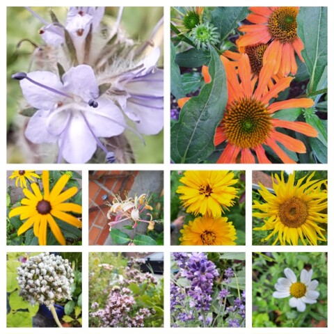 Es summt und brummt überall. die Kübel und Eimer wurden so bepflanzt das es von April bis in den späten Herbst hinein grünt und blüht.