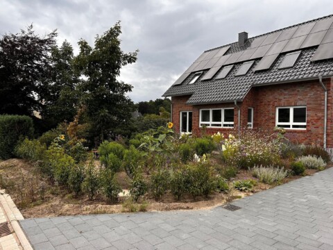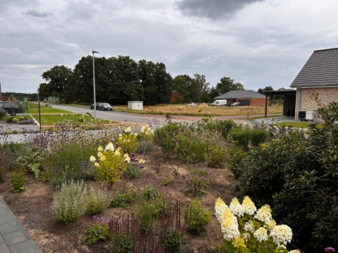 Wir haben im April 2025 angefangen unseren Vorgarten in einen blühenden Garten für die Insekten zu verwandeln. Zuvor war die Stelle eine kleine Sandwüste, da wir neu gebaut haben und letztes Jahr erst in unser Haus eingezogen sind.