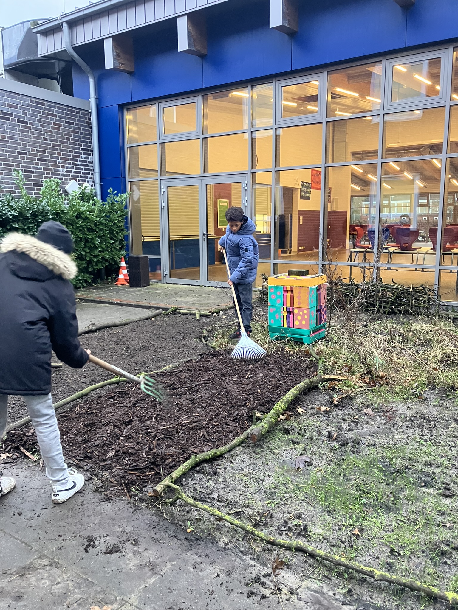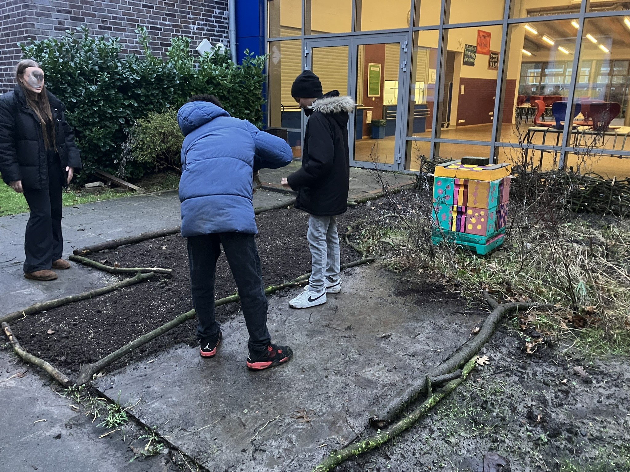 Unter dem Motto “reduce, reuse, upcycle“ kaufen wir für die Projektumsetzung nur wenig Neues. Wir nutzen regelmäßig “Kleinanzeigen“ und freuen uns über die große wohlwollende Unterstützung von außerschulischen Personen auf der Ostfriesischen Halbinsel. Privatpersonen, Kolleg:innen und Eltern bereichern unseren Schulgarten durch kostenlose Pflanzenschenkungen, Arbeitsmaterial, Regentonnen, Gartenmobiliar und Tipps.