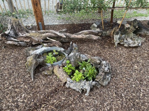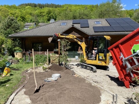 Regenwasser wird gesammelt und die Ertragszone wird sparsam per Tröpfchen-Bewässerung bewässert. Energie wird mittels PV-Anlage erzeugt, wenn immer möglich werden alte, gebrauchte Materialien verwendet, Upcycling und die Schonung von Ressourcen ist mir wichtig, Jungpflanzen werden herangezogen, Rasenfläche reduziert, Flächen werden gemulcht (Schafswolle einer Schülerin), nur einheimische Pflanzen werden gepflanzt, Verzicht auf jegliche Pflanzenschutzmittel etc.