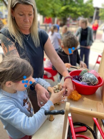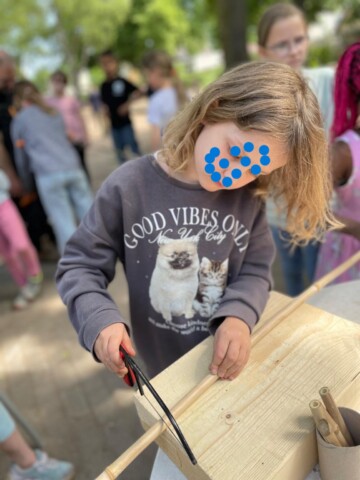 Viele Hände, schnelles Ende. In nur drei Arbeitseinheiten hat die Gruppe mit motivierten Kindern die Spirale zu Ende gebaut. Jede*r hatte eine Aufgabe übernommen, sie sprachen sich ab und koordinierten sich eigenständig. Es war eine tolle Gruppenleistung!