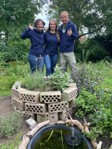 Inzwischen haben wir den Mini-Teich befüllt und bepflanzt. Wir möchten auch darauf achten, dass die Wasserqualität gut bleibt. Mit der richtigen Pflege und den richtigen Pflanzen hoffen wir sehr, dass es uns gelingt.