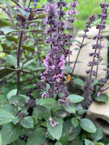 Die Kräuterspirale wurde mit den ersten Spenden aus einer Gärtnerei bepflanzt. Hier musste darauf geachtet werden, welche Kräuter in welche Zone gehören. Die Kräuter, die sich stark verbreiten, werden an den Rand gesetzt, sodass sie über die Mauer wachsen können.
