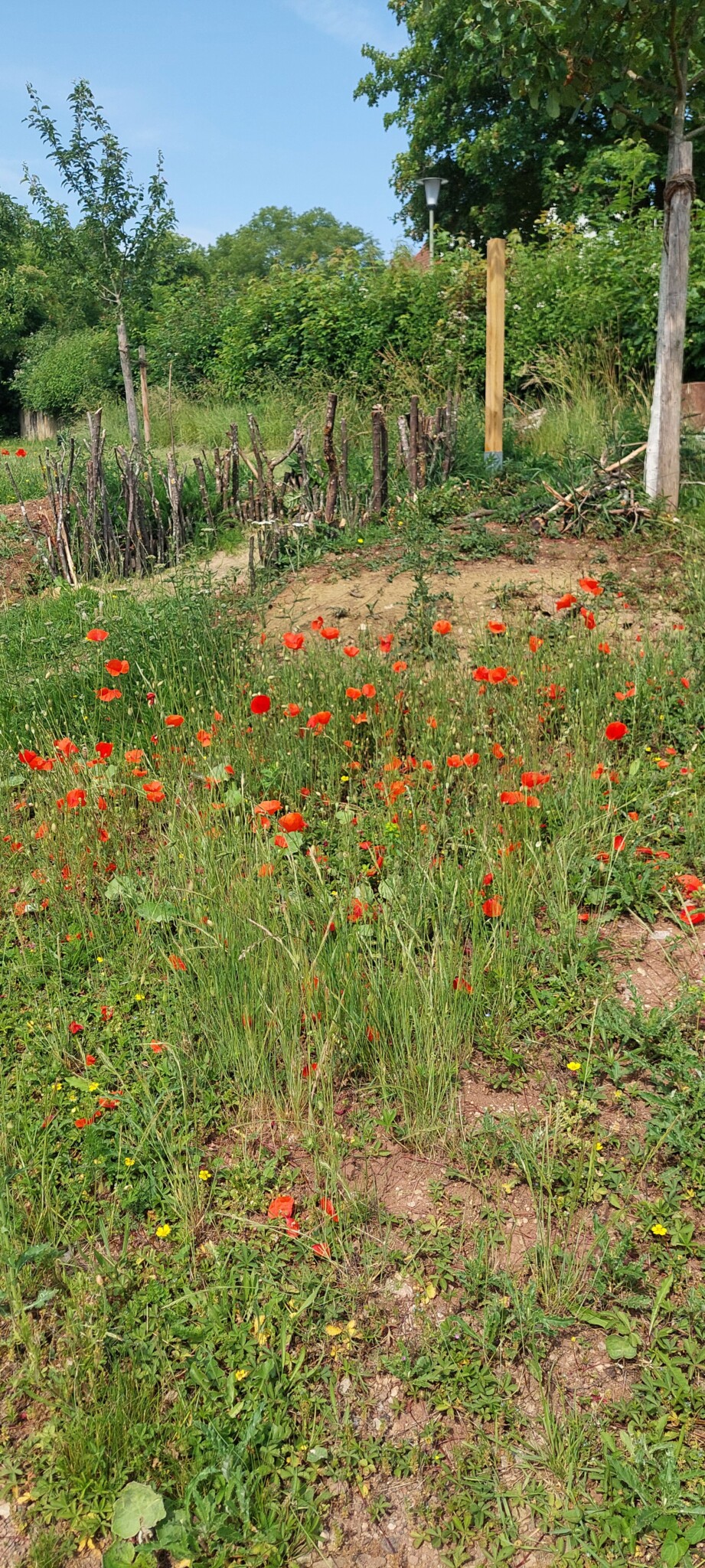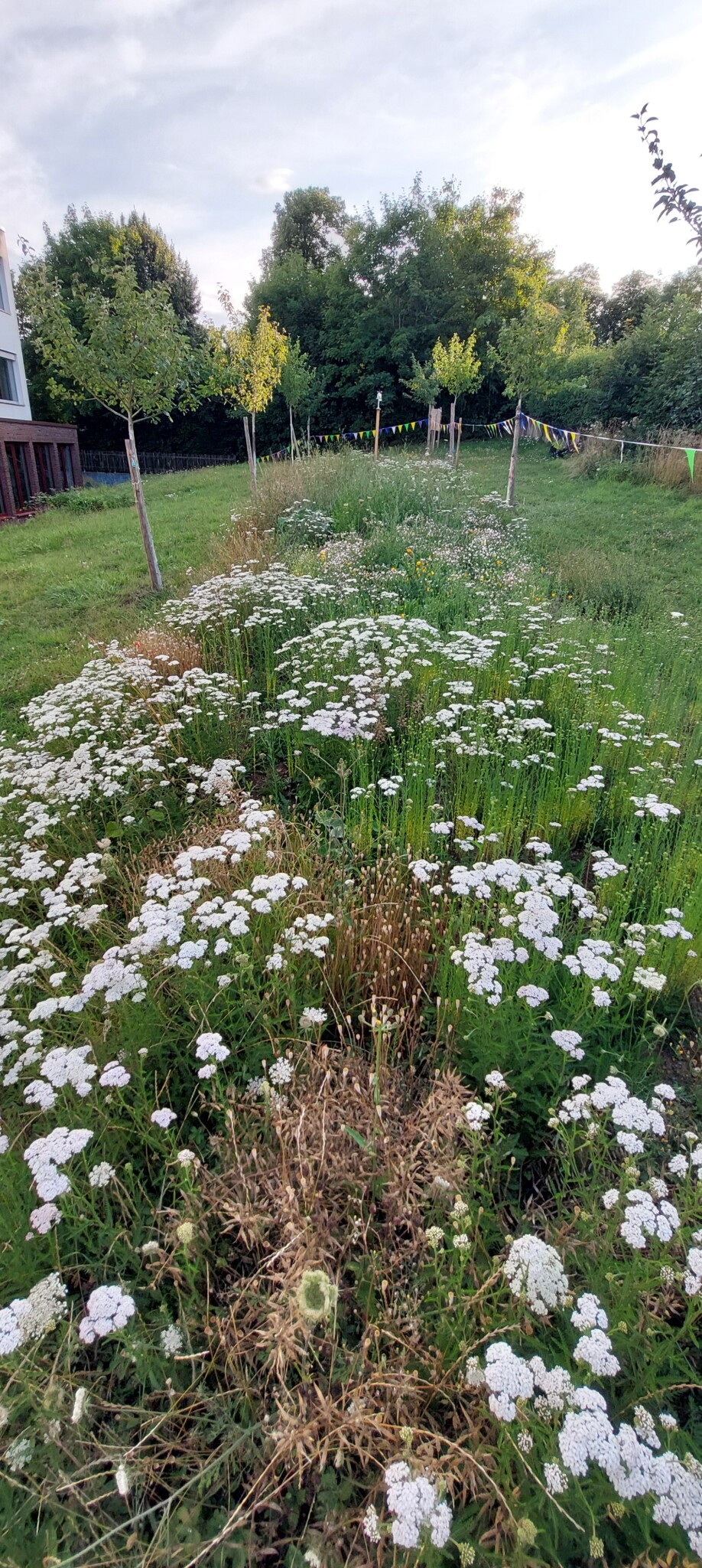 Durch die zunehmenden, vielseitigen Pflanzen in unseren unterschiedlichen Beeten und der wachsenden Gesamtfläche ist uns in diesem Jahr eine deutliche Zunahme der Artenvielfalt bewusst geworden. Außerdem konnten wir beobachten, wenn man einfach abwartet, dass sich dann viele, heimische Wildpflanzen von alleine ansiedeln. Diese benötigen dann auch meist keine zusätzliche Pflege oder Wassergabe ( ressourcensparend).