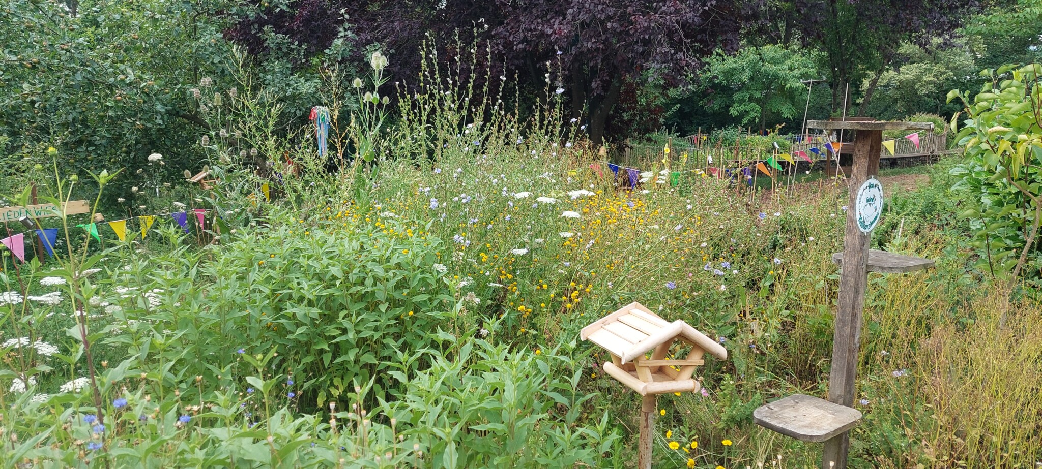 In unserem Grünen Klassenzimmer kann man mittlerweile viele, unterschiedliche, heimische Wildpflanzen entdecken: Frühblüher, Obstgehölz, Flockenblumen, Glockenblumen, Königskerzen, Korbblütler, blaue Blühender, Doldenblütler, Würzkräuter, Wicken und Klee, Nachtblüher und Spätblüher.