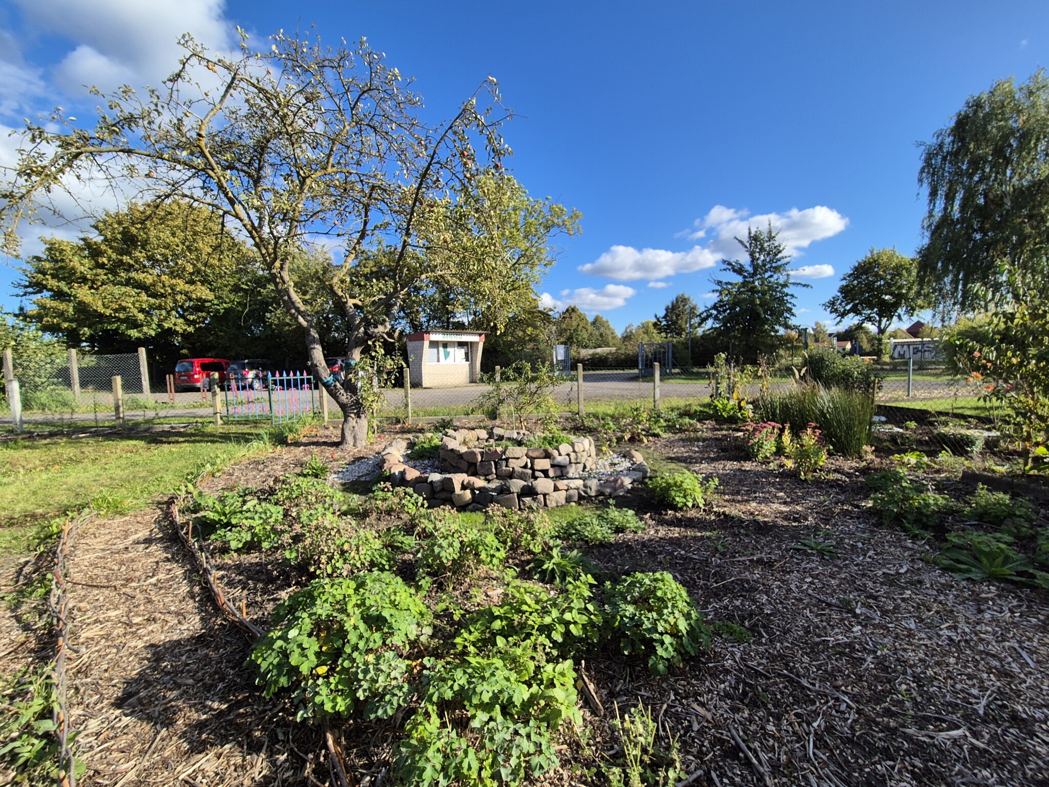 2024 haben wir eine prächtige Schmetterlingsspirale (Ø 3m) im Gemeinschaftsgarten angelegt und initial bepflanzt. Im September haben wir die Regionalgruppe Greifswald des Naturgarten e.V. eingeladen und weitere wilde, heimische Jungstauden ergänzt.