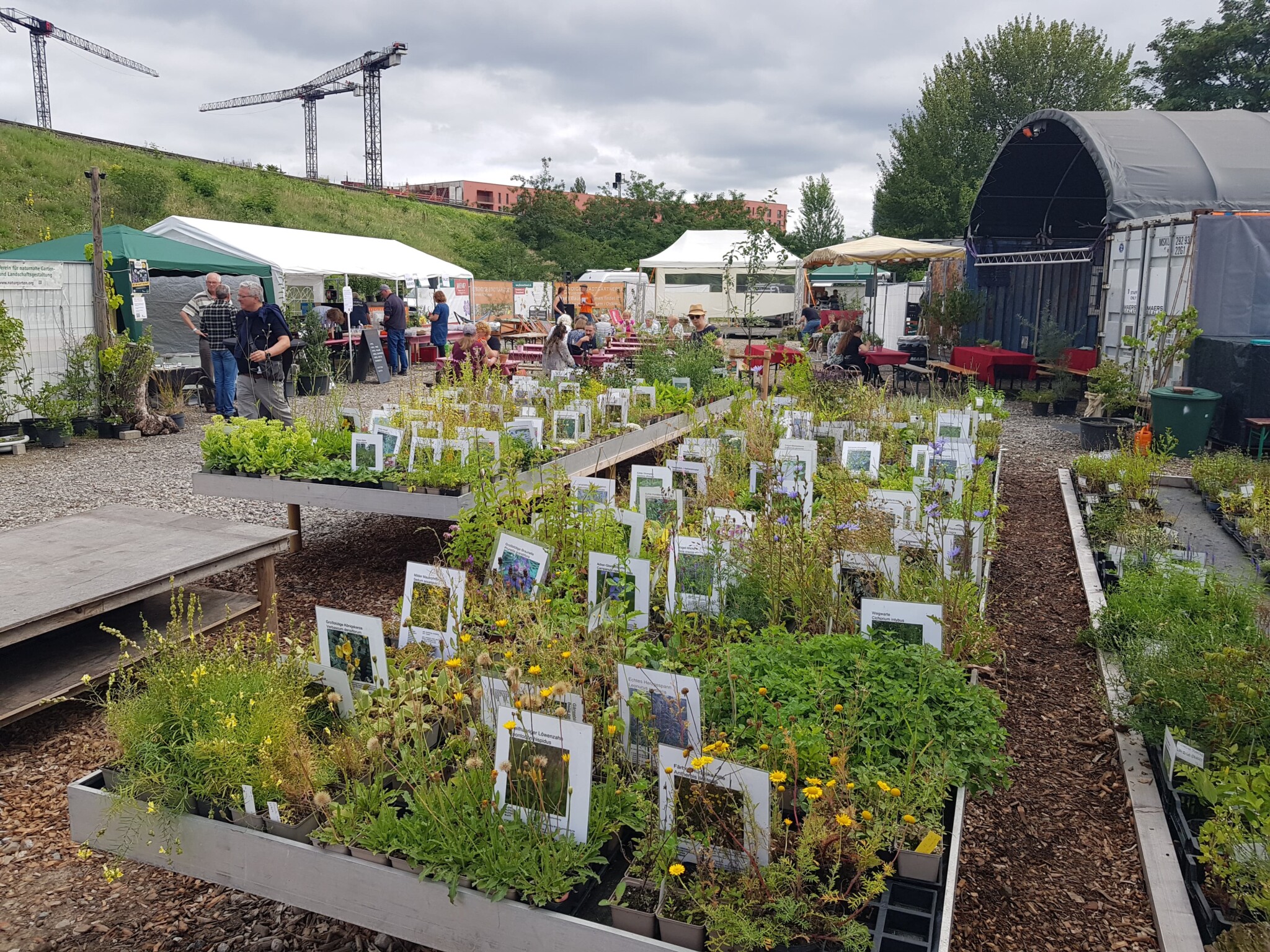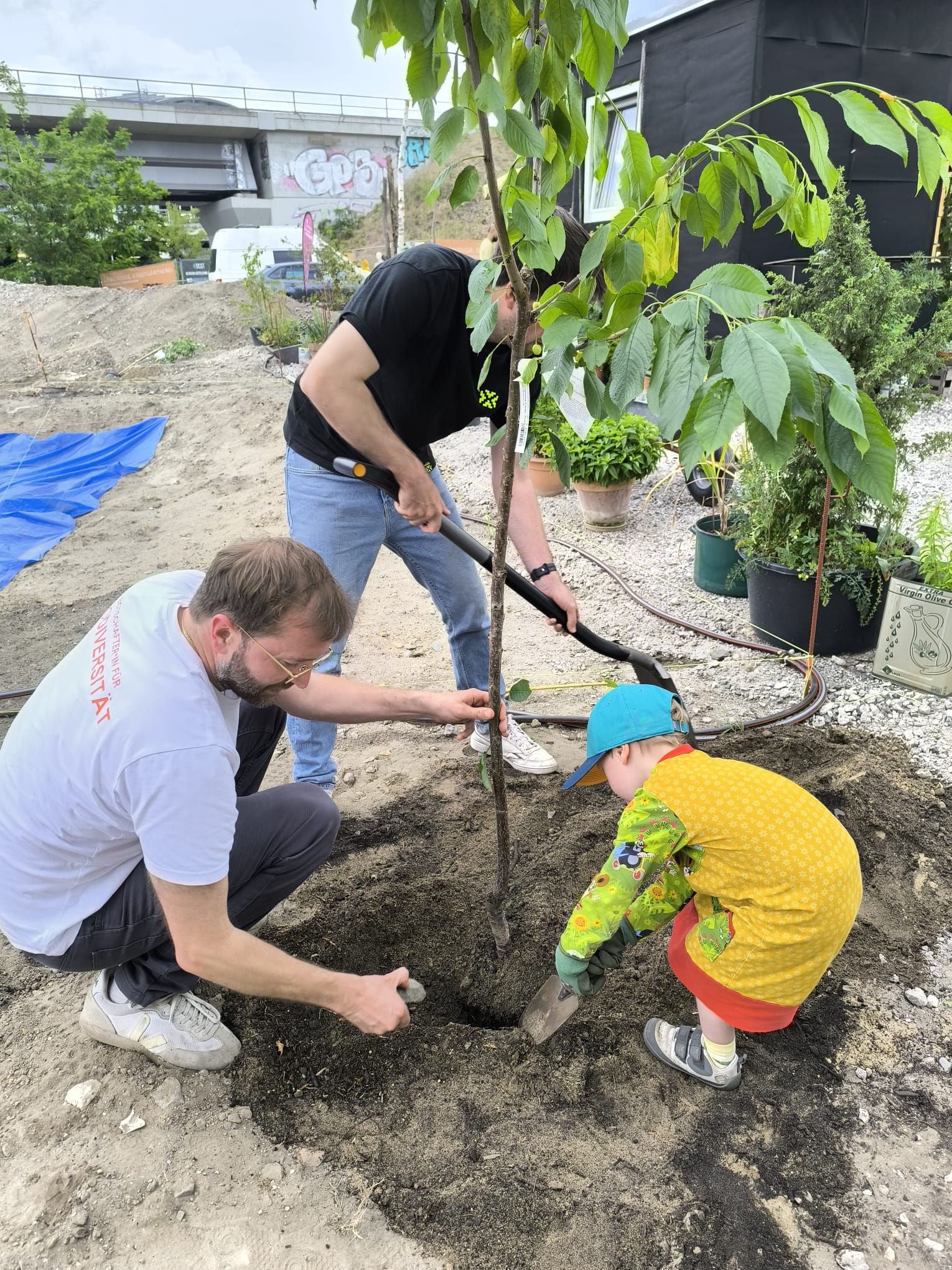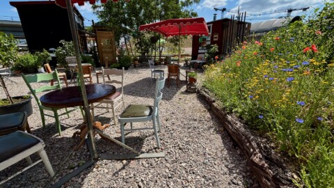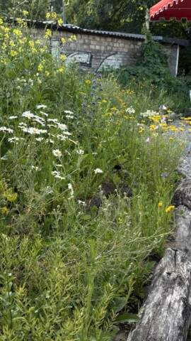 Was uns dabei wichtig ist: Begegnung. Austausch. Lernen- Fachwissen wird geteilt und vermittelt. Wer unsere Gärtnerei besucht, kann sich in Ruhe umsehen, sich inspirieren lassen, zuhören, fragen, mitmachen. Schulklassen helfen beim Pflanzen, Nachbar*innen bauen mit uns Trockenmauern, andere sitzen einfach im Café und lassen Bienen und Schwebfliegen den Straßenlärm übertönen.