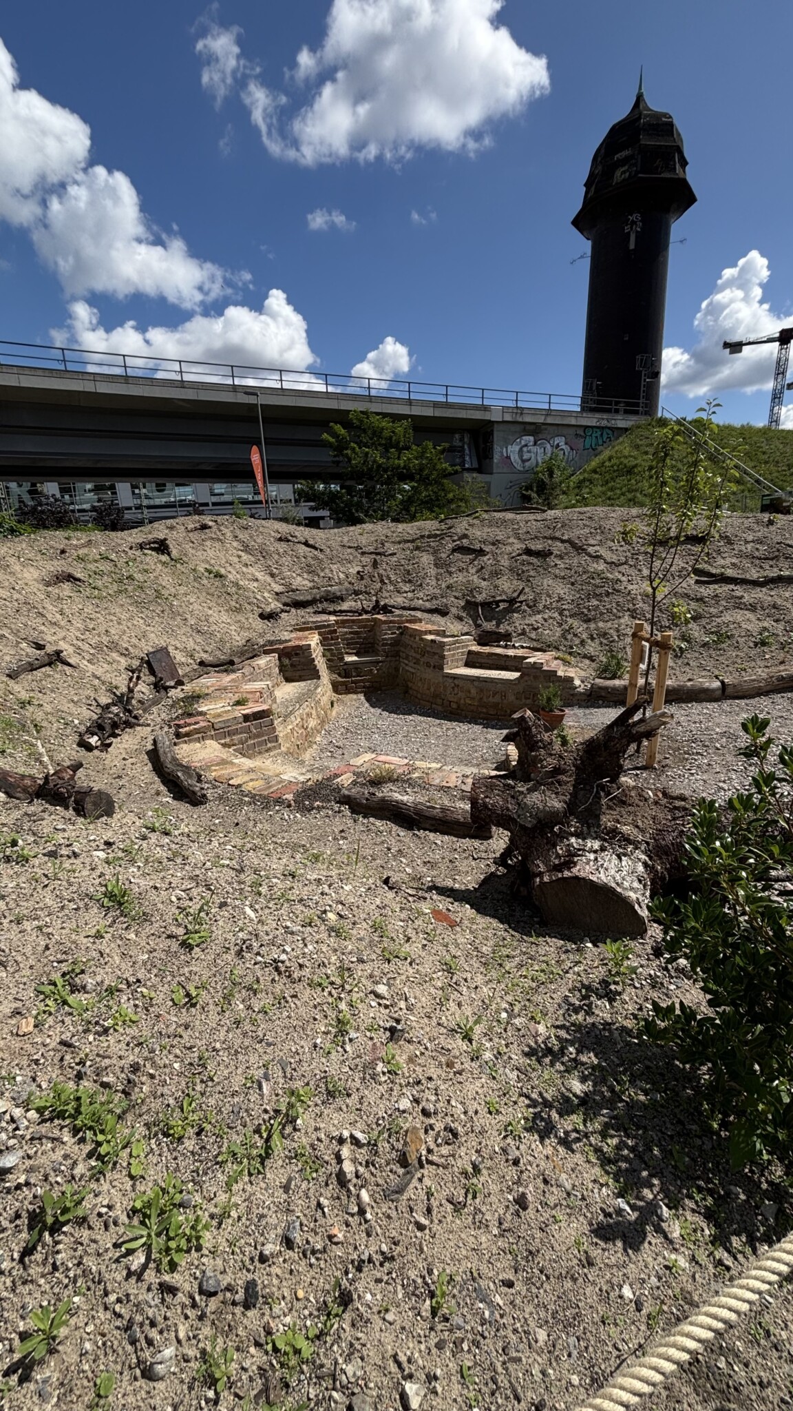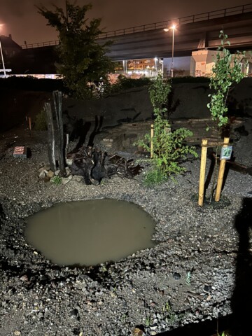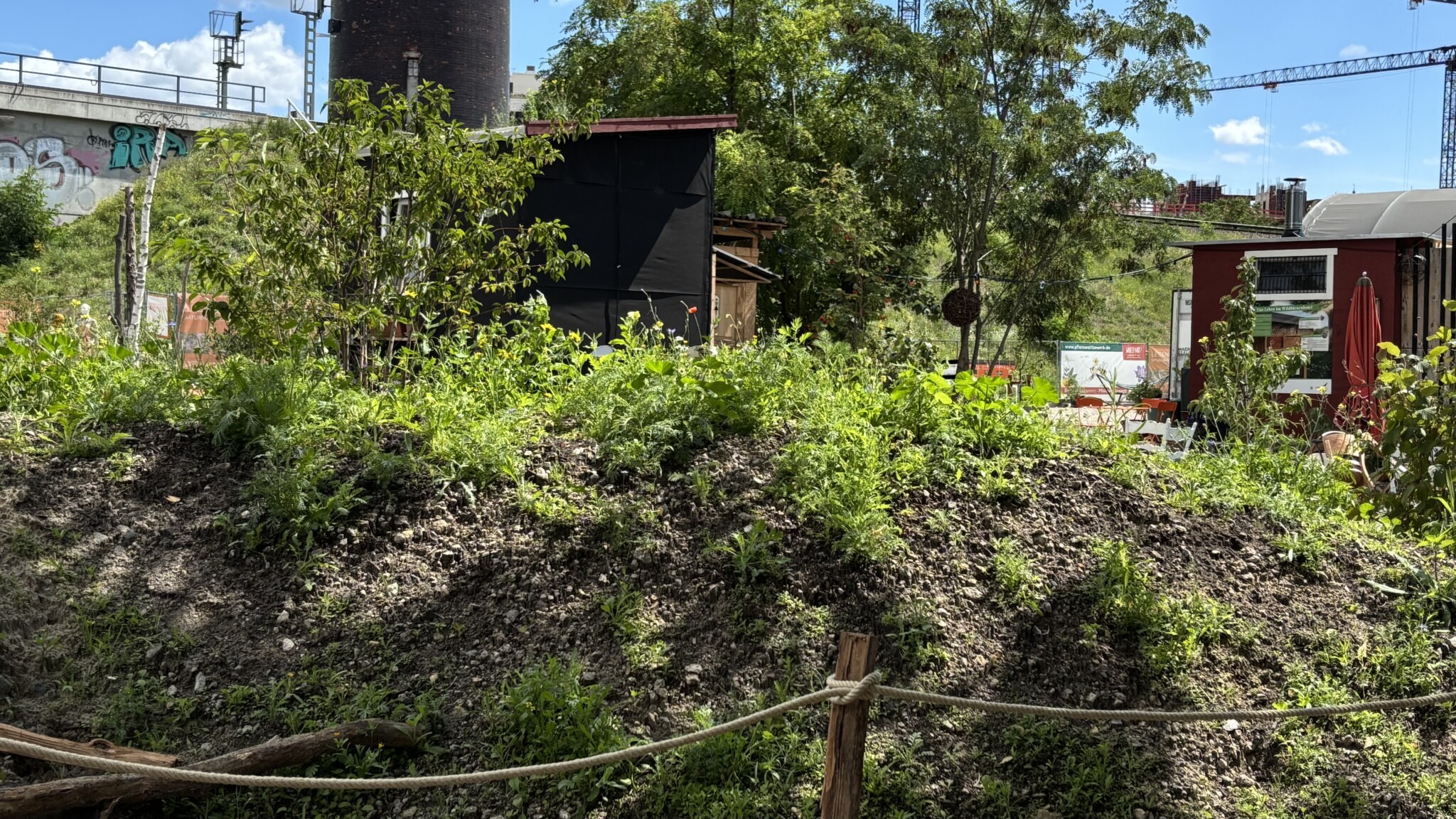 Doch immer folgt auf das Ende ein Anfang. Direkt neben dem Bahnhof Ostkreuz, am Fuße des alten Wasserturms, fanden wir eine brachliegende Fläche. Rund 2.000 Quadratmeter – einst Lagerplatz, unzugänglich, verdichtet. Heute wächst hier wieder Leben.