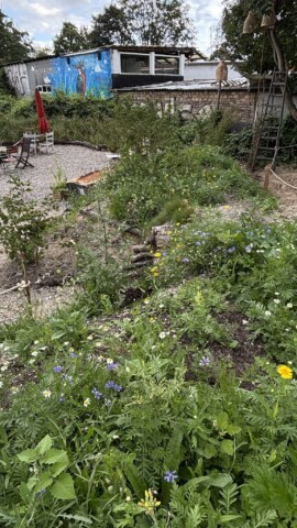 Seit Oktober 2024 arbeiten wir daran, diesen Ort in ein lebendiges, dreidimensional gestaltetes Biotop zu verwandeln. Mit Teich, Senkgarten mit Trockenmauern, Wildstauden, Kräutern, Sträuchern. Mit Raum für Tiere, Pflanzen – und Menschen.