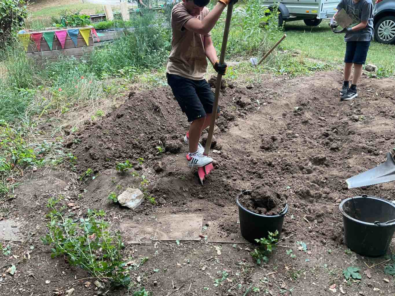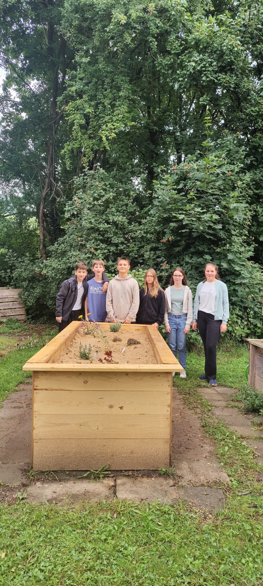 In unserem Schulgarten haben wir ein Sandarium gebaut – das ist ein besonderer Lebensraum für Wildbienen und andere nützliche Insekten, die heute oft keinen Platz mehr in der Natur finden. Damit sich die Tiere bei uns richtig wohlfühlen, haben wir lockeren Sand, Totholz, Natursteine und kleine Hügel angelegt.
