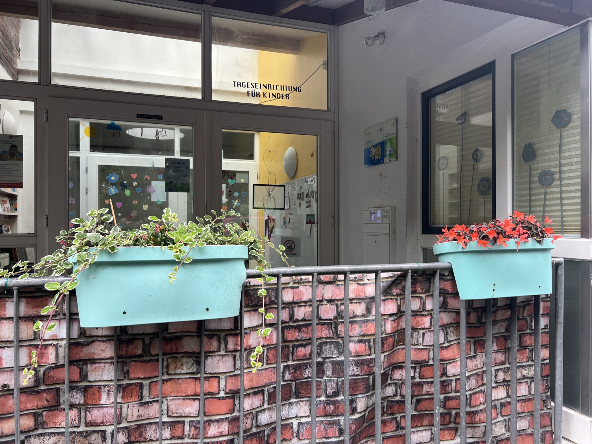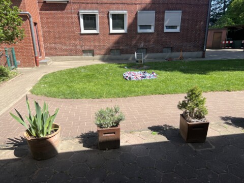 Hängebegonien haben wir an einem halbschattigen bis schattigen Standort vorne im Kübel am Eingang der Kita gepflanzt. Die Blüten sind attraktiv für Bestäuber.