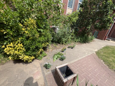 Fuchsien haben wir an einem halbschattigen Standort mit gut durchlässigem Boden gepflanzt. Die Blüten sind attraktiv für Bestäuber und haben nach dem Einsetzen für wunderschöne Farbtupfer im Kindergarten gesorgt. Verblühte Blüten werden regelmäßig abgeknipst, um das Wachstum neuer Blüten zu fördern.