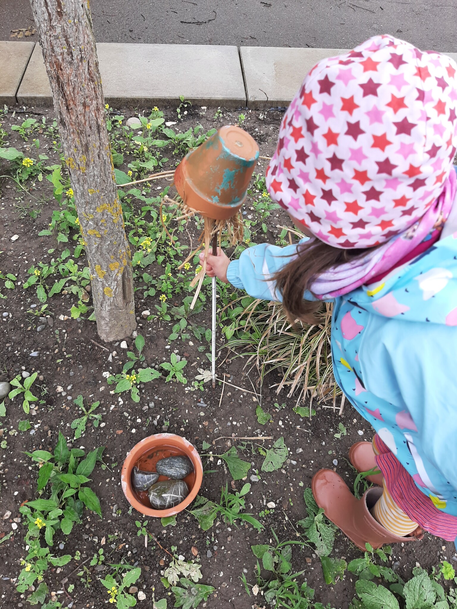 Wir sind 8 Kinder und eine Lehrerin und legen diese Fläche im Rahmen der einmal pro Woche stattfindenden AG an.