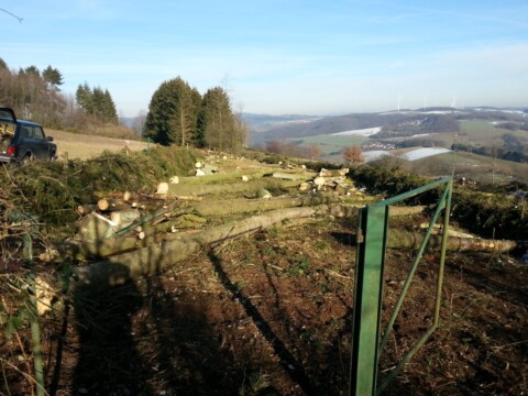 Auf der Fläche befand sich ein Fichten-Wald, der als schnell wachsende Monokultur vor 50 Jahren angepflanzt wurde.