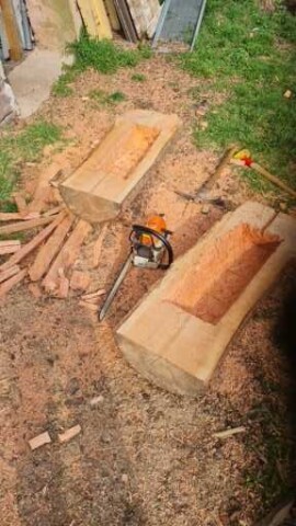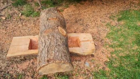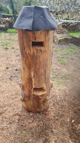 Daher kamen wir auf die Idee solche künstliche Baumhöhlen zu imitieren. Es wurden dicke Holzklötze aufgeschnitten, ausgehöhlt und mit unterschiedlich ausgeprägten Öffnungen versehen. Diese Holzklötze wurden dann in speziell angefertigte Stangengestelle eingefügt und auf dem Gelände aufgestellt.