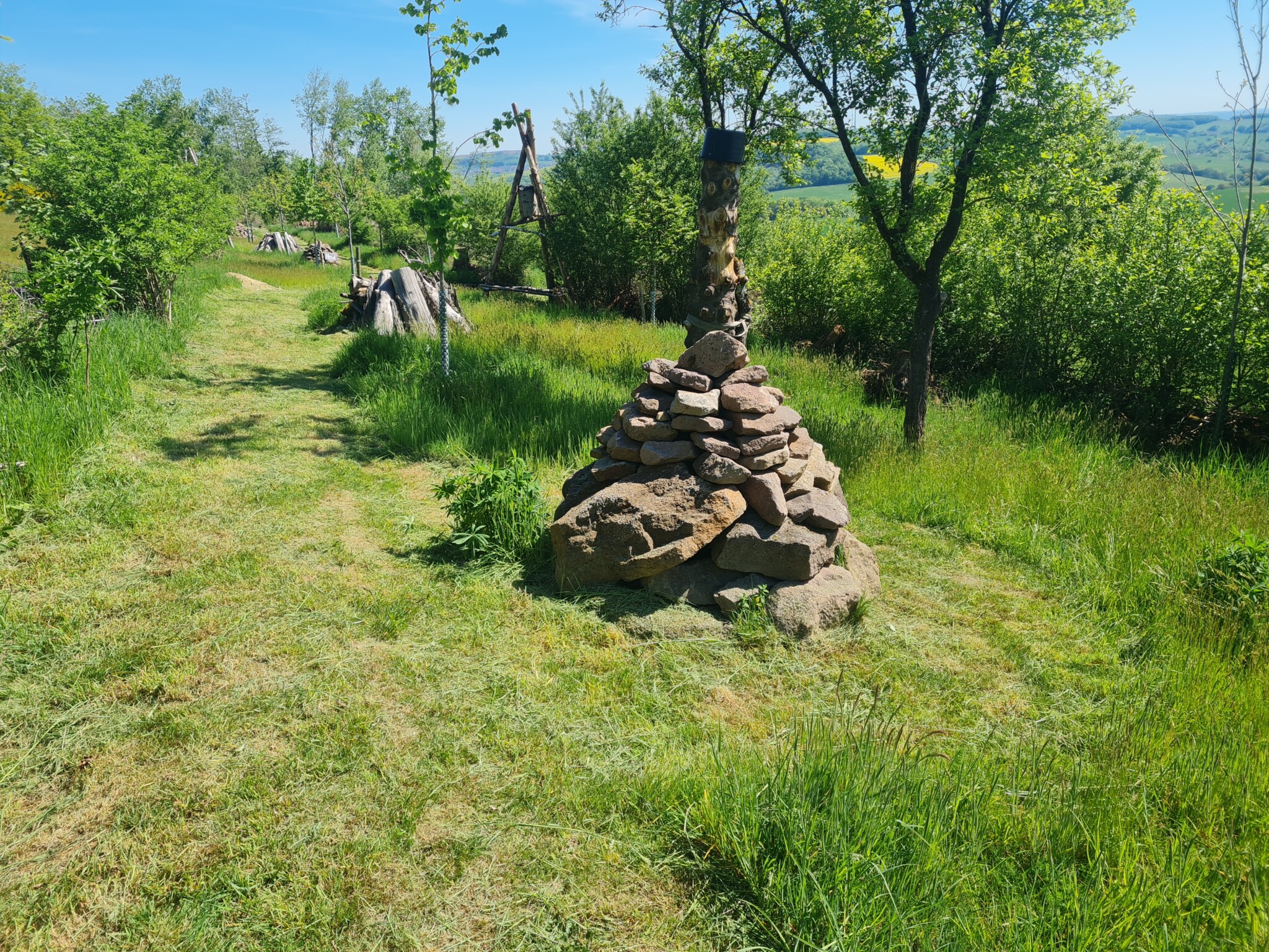 In der gerodeten Fläche wurden mehrere Stein-Pyramiden für Reptilien und sonstige Wärme liebende Insekten und Kleinsäugetiere aufgeschichtet. Die Steine stammten dafür größtenteils aus den vor Ort ausgehobenen Pflanzlöchern für die neuen Bäume.