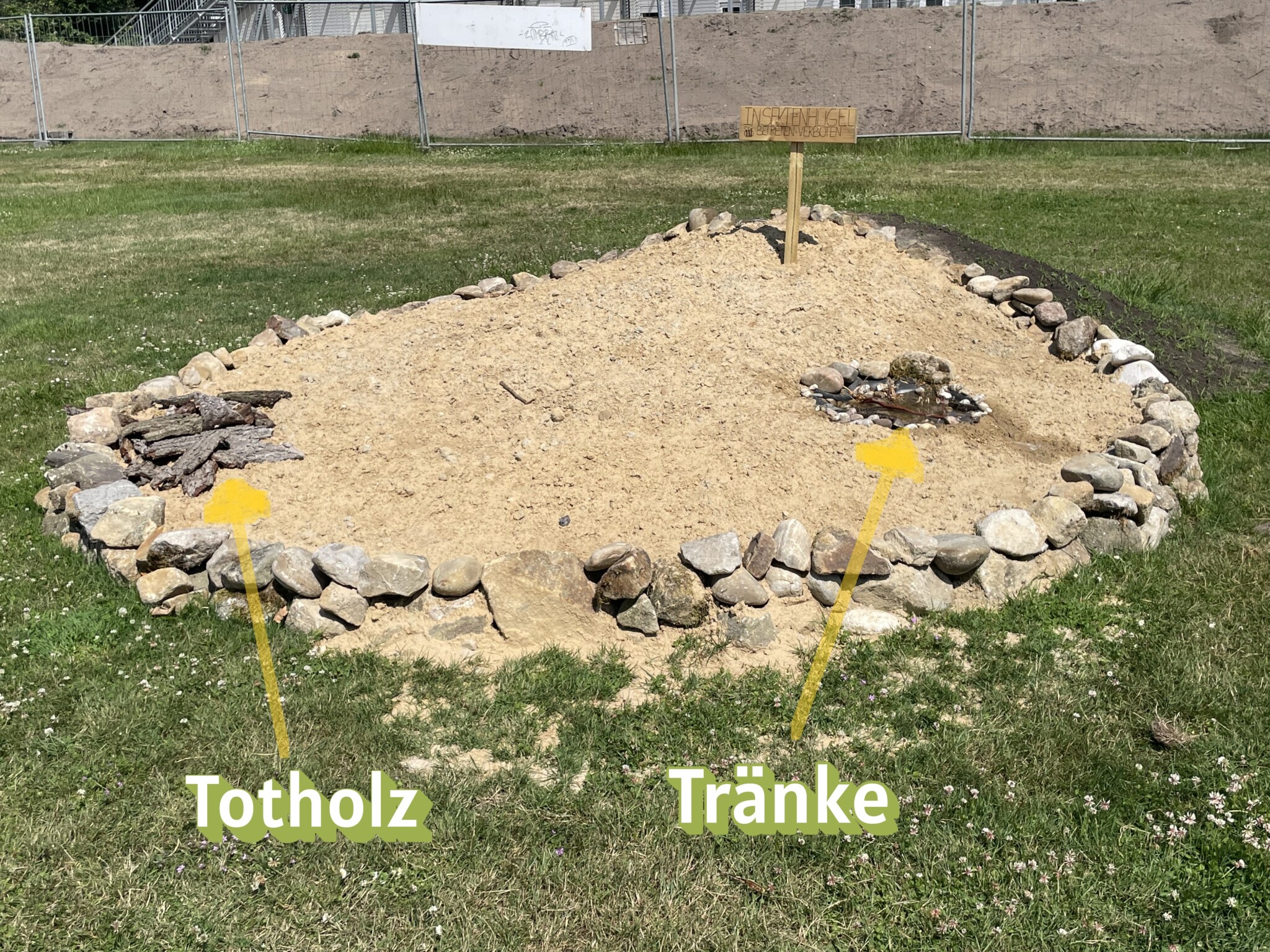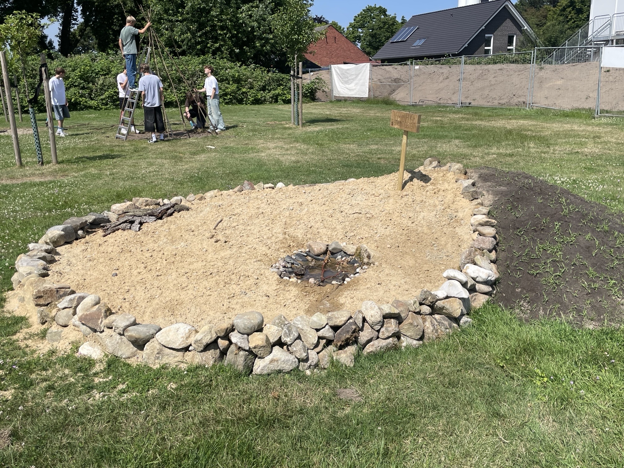 Als kleines Paradies für Käfer, Fliegen, Bienen und Co. wurden eine Blühfläche und ein Sandhügel gebaut.