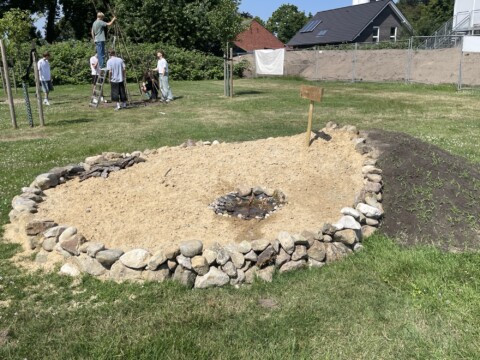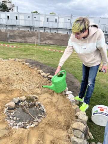 Insektenhügel mit Trockenmauer für den Schulgarten