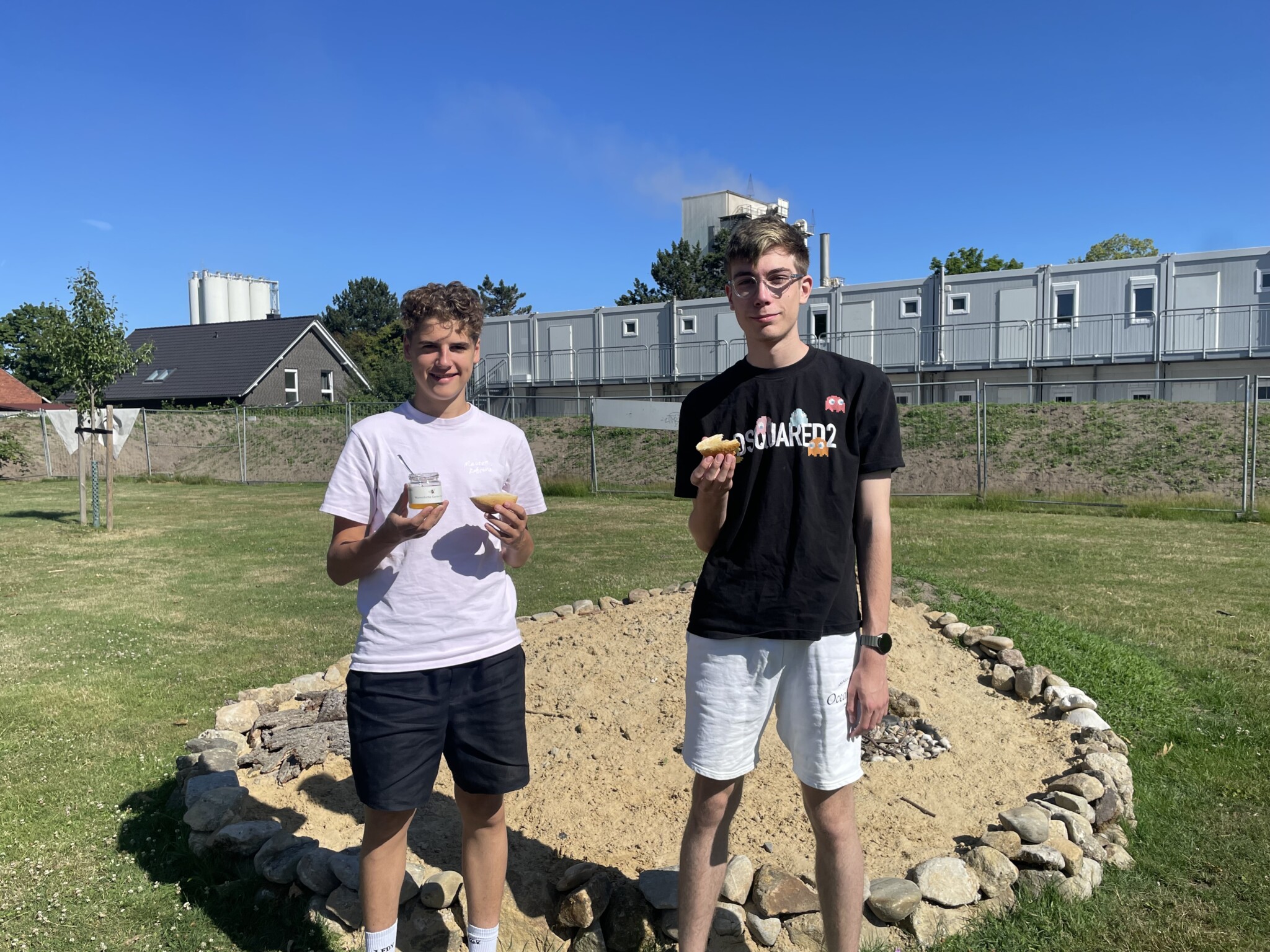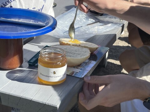 Am Ende des Schuljahres gab es ein Frühstück im Schulgarten mit Honig von den fleißigen Bienchen für unsere fleißigen Gartenhelferinnen und Gartenhelfer.