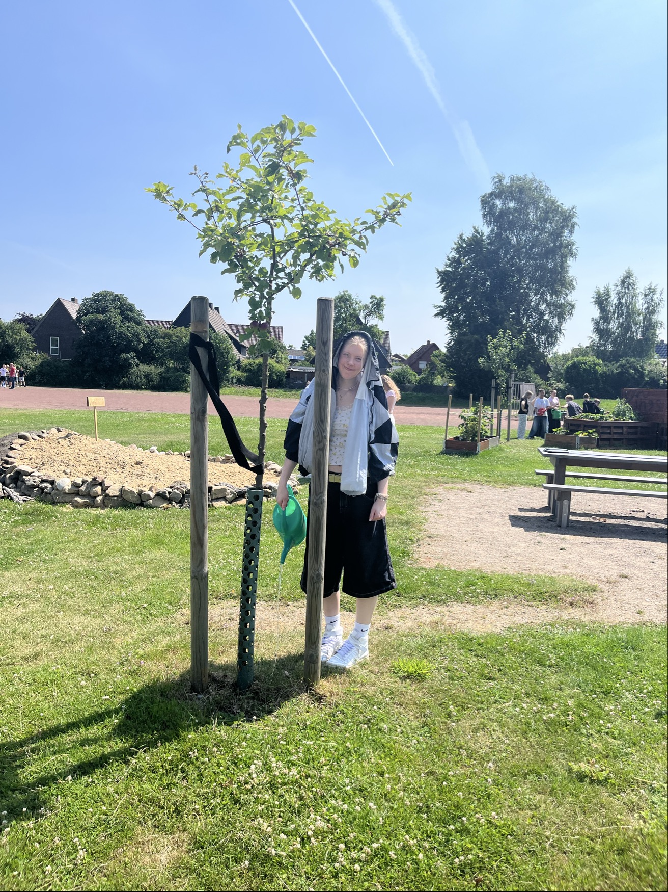Unser Insektenhügel liegt im Grünen Klassenzimmer der Schule inmitten unserer 16 Obstbäume.