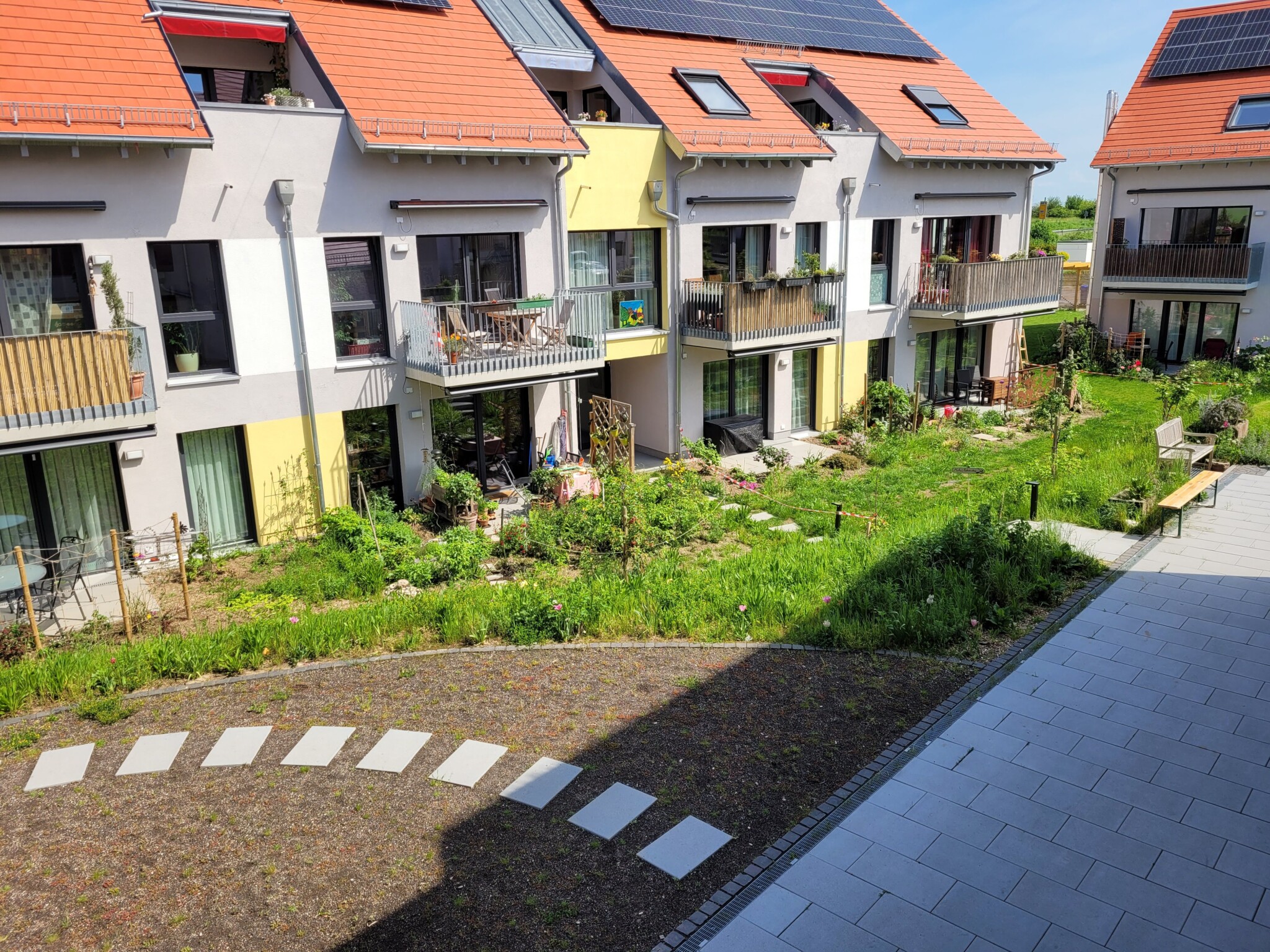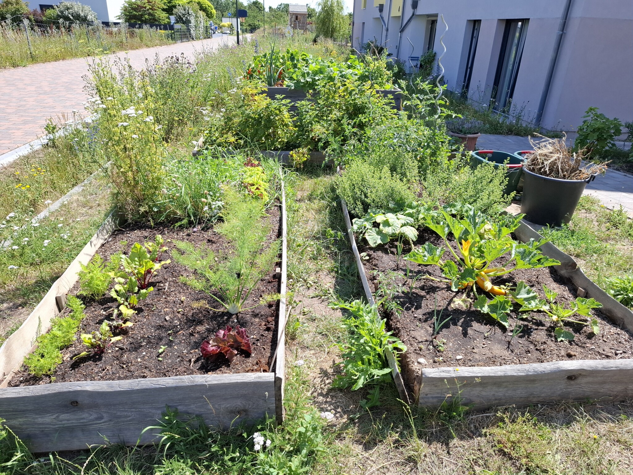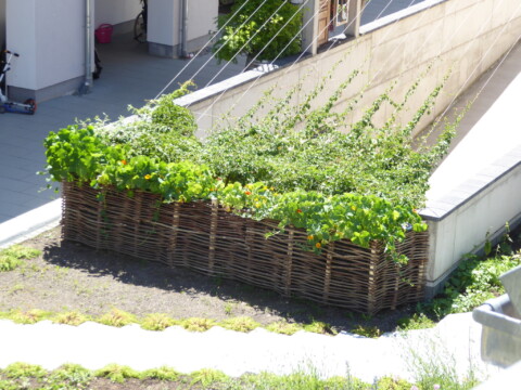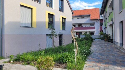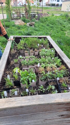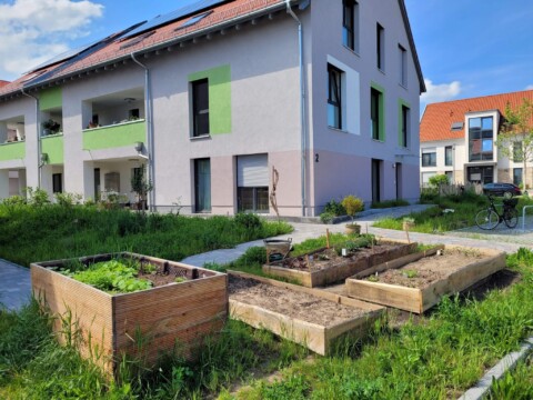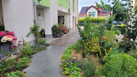 An mehreren Stellen unseres Wohnprojektes gibt es Kräuterbeete und -töpfe. Das freut Insekten und Bewohner.
