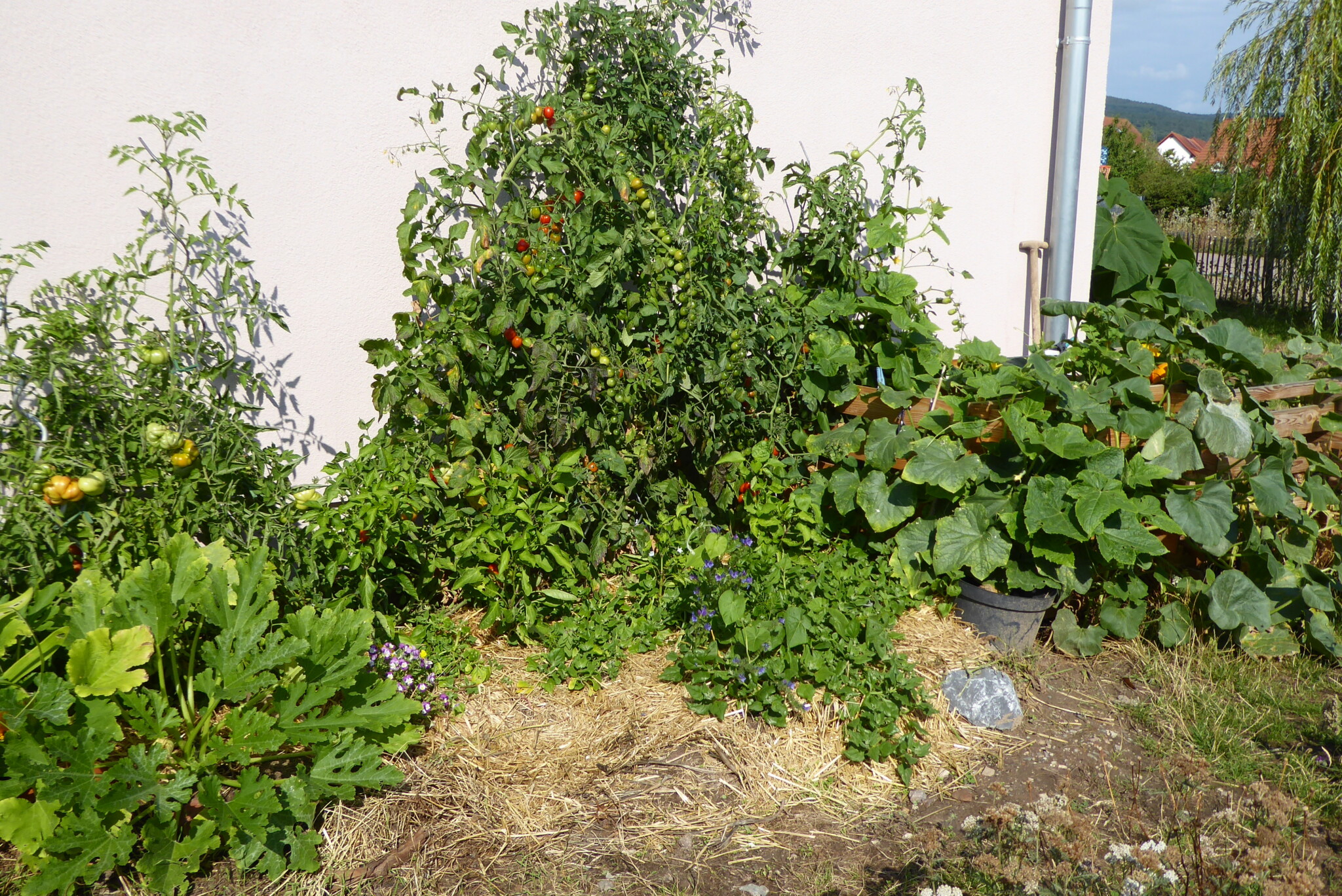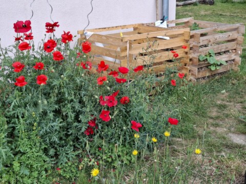 Statt der Mohnblumen gedeihen nun neben dem Komposthaufen mit viel Liebe gepflegte leckere Tomaten, Kürbisse und Paprika.