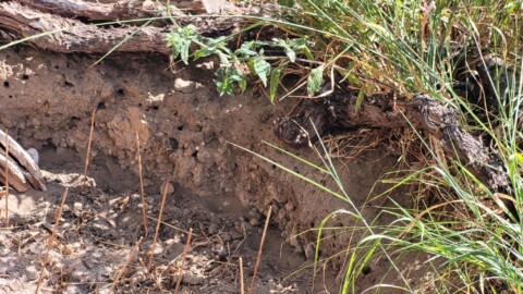 Die Löcher in der Steilwand des tiefen Sandariums wurden von Sandwespen als Brutröhren gegraben.