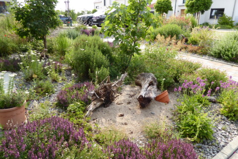 Über die Pflanzenwahl machten wir uns viele Gedanken. Der Klimawandel verursacht in unserem Gebiet an der Weinstraße meistens große Trockenheit und Hitze im Sommer. Auch sollte das neue Beet pflegeleicht sein und wenig Wasser benötigen.