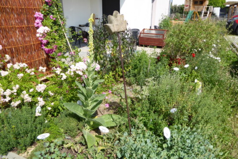 Auf dem trockenen Boden siedeln sich Königskerzen gern an. Das Beet sieht jedes Jahr etwas anders aus.