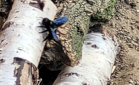 Die Schwarzblaue Holzbiene kann man oft auf dem Totholz am Sandarium beobachten.