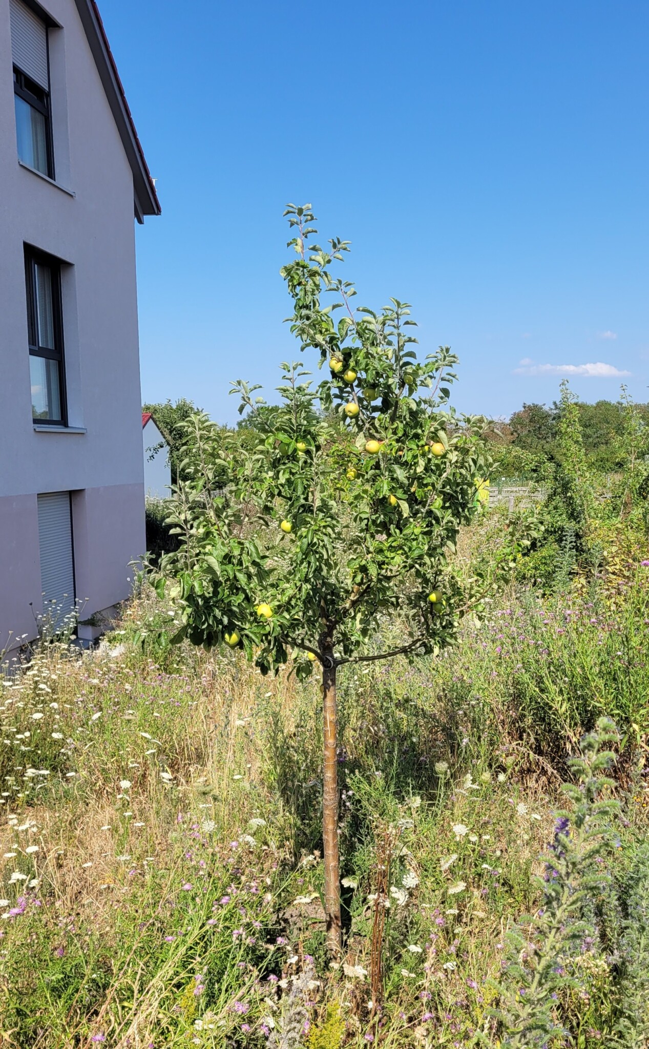 Es ist ein Apfelbaum, der hoffentlich bald Früchte trägt.