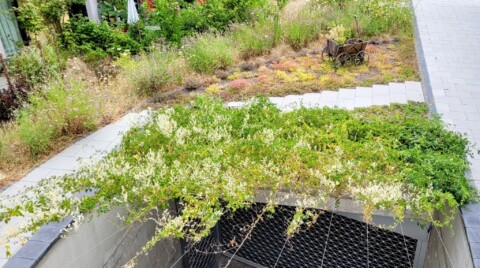 Das Sedum wollte nicht so richtig wachsen auf dem Spezialgranulat über der Tiefgarage.