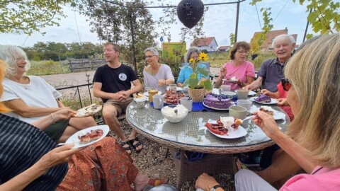 Wir genießen unseren Pavillon bei Kaffee und Kuchen und sind glücklich und froh, dass wir unsere gemeinsame Ziele erreicht haben.