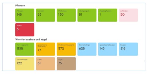Wir freuen uns und sind stolz über unseren Beitrag zum Erhalt der Insektenwelt. Das hat die NaturaDB-App für unsere 2000 qm Außengelände laut Pflanzliste errechnet.