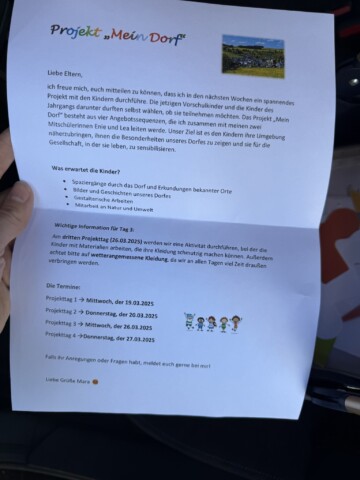 Unter dem Motto „Kinder erobern das Dorf“ habe ich im Rahmen meiner Ausbildung zur Erzieherin in der Kita in Grönebach ein kreatives Angebot geschaffen, bei dem die Kinder nicht nur mitmachen, sondern aktiv mitgestalten konnten.
