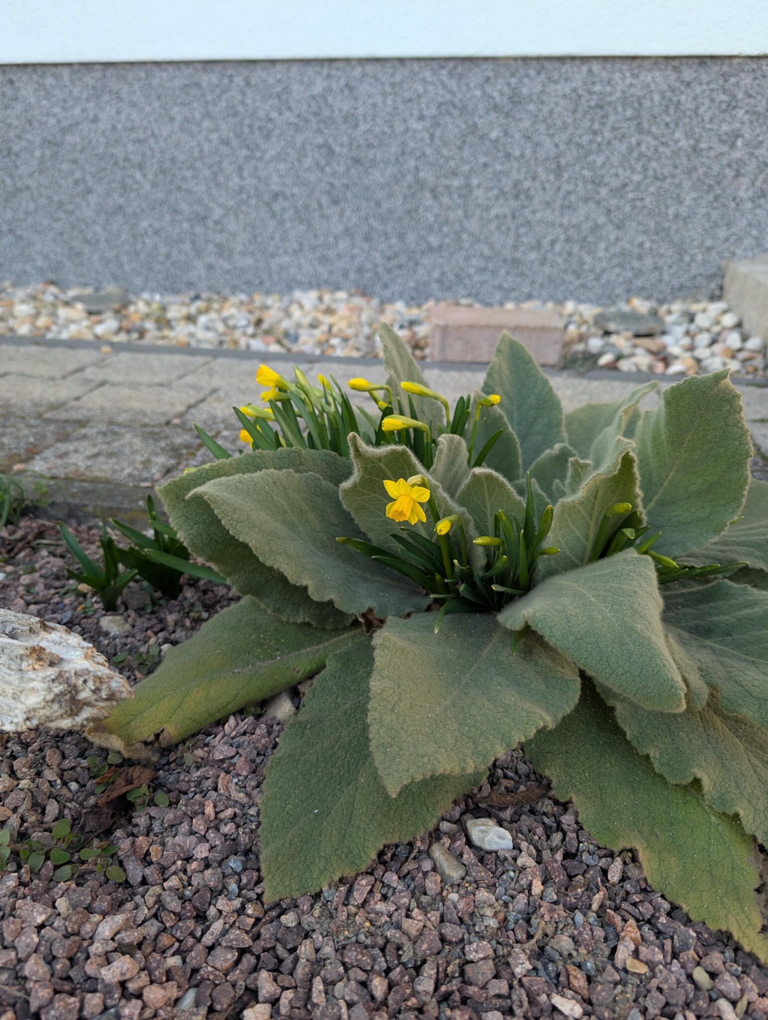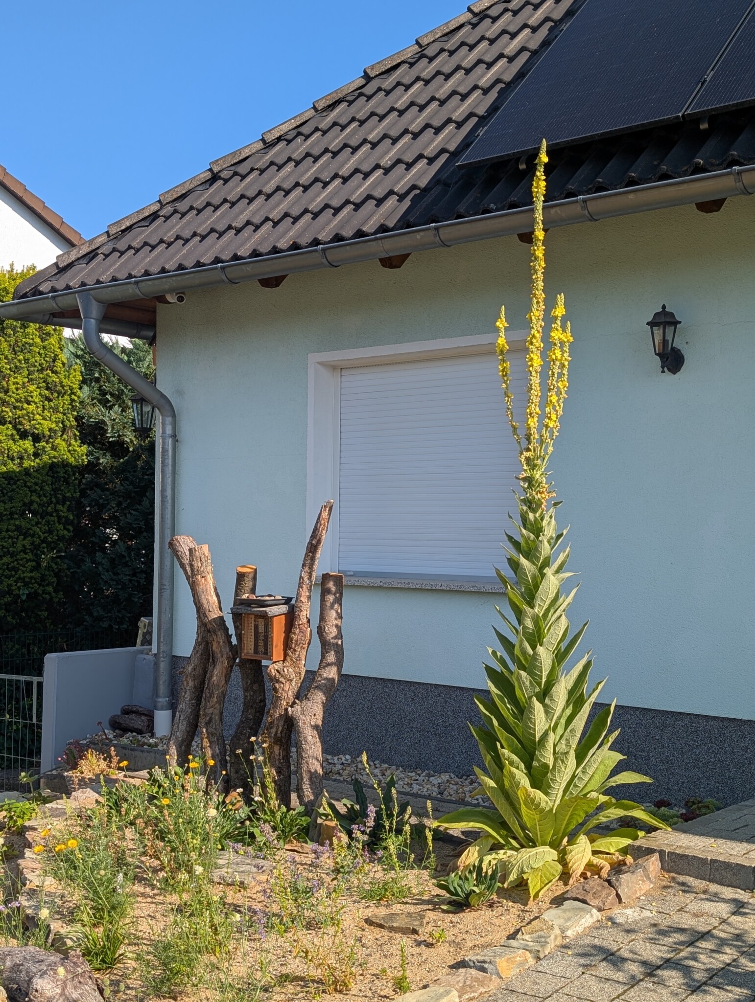 Schon bevor wir überhaupt mit dem Umbau begonnen haben, hatte sich ein ganz besonderer Gast im Vorgarten angesiedelt: eine Königskerze, die im letzten Jahr still und leise ihre Blattrosette gebildet hatte. Für mich war sofort klar – sie bleibt! 🌼