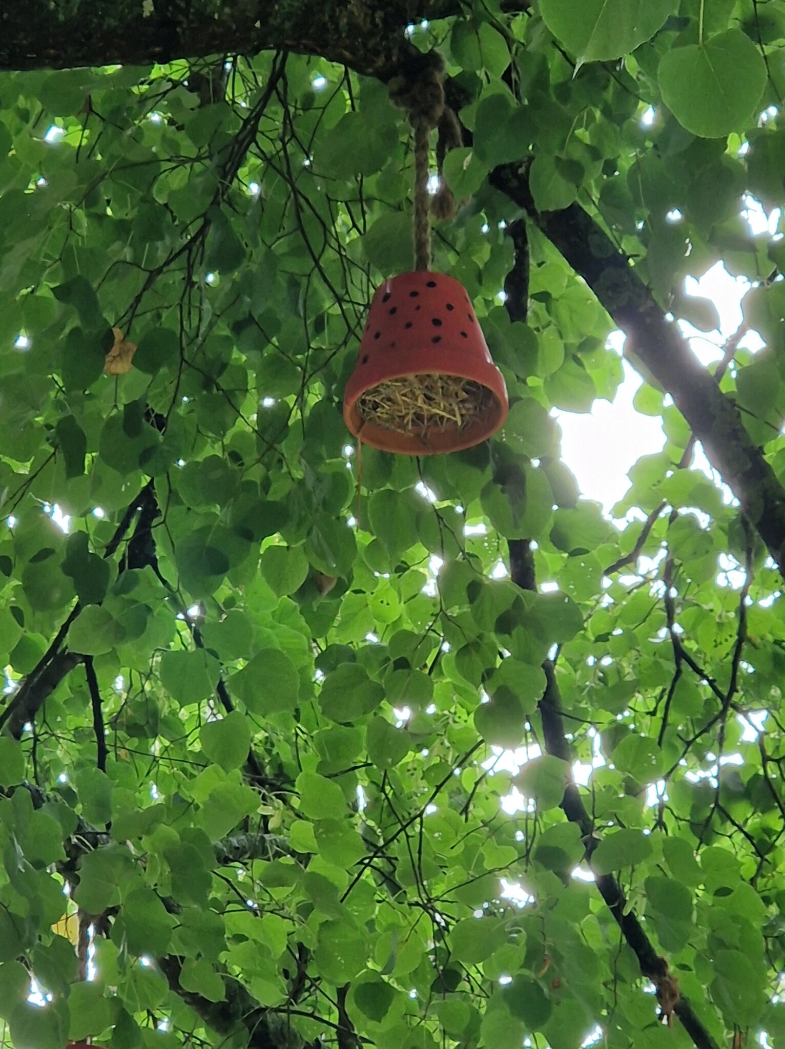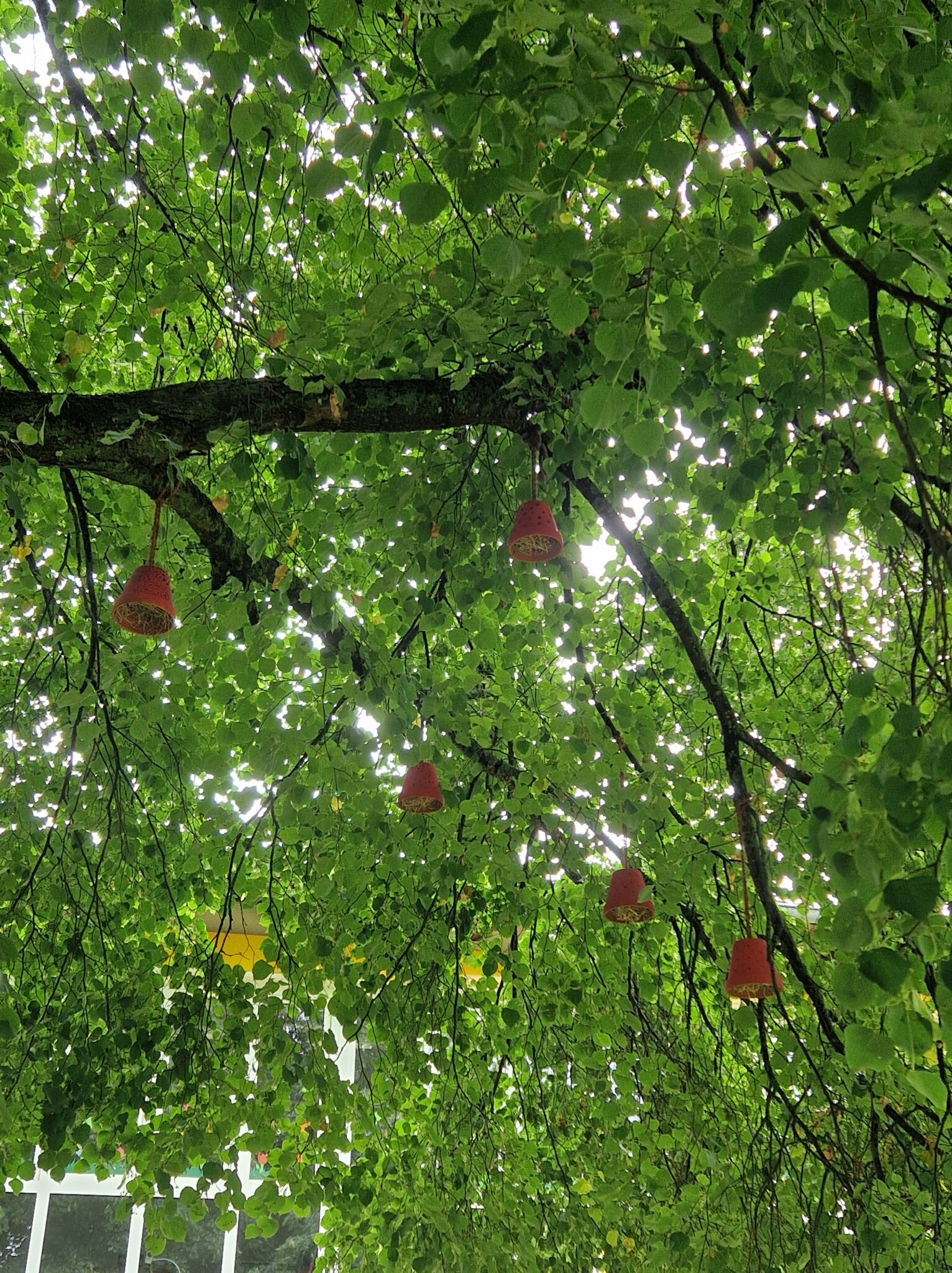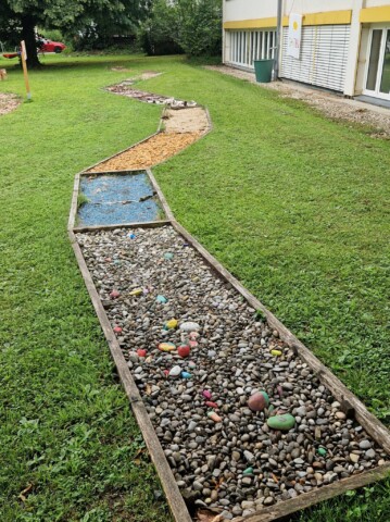 Die erste Klasse übernahm die Renovierung des Barfußpfads, entfernte Unkraut und befüllte einzelne Bereiche neu, sodass der Pfad nun wieder von der Schule sowie von externen Besucherinnen und Besuchern genutzt werden kann. Zusätzlich fertigten die Kinder kleine Insektenhotels aus Tontöpfen an, die neue Lebensräume für nützliche Insekten bieten.