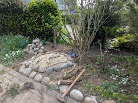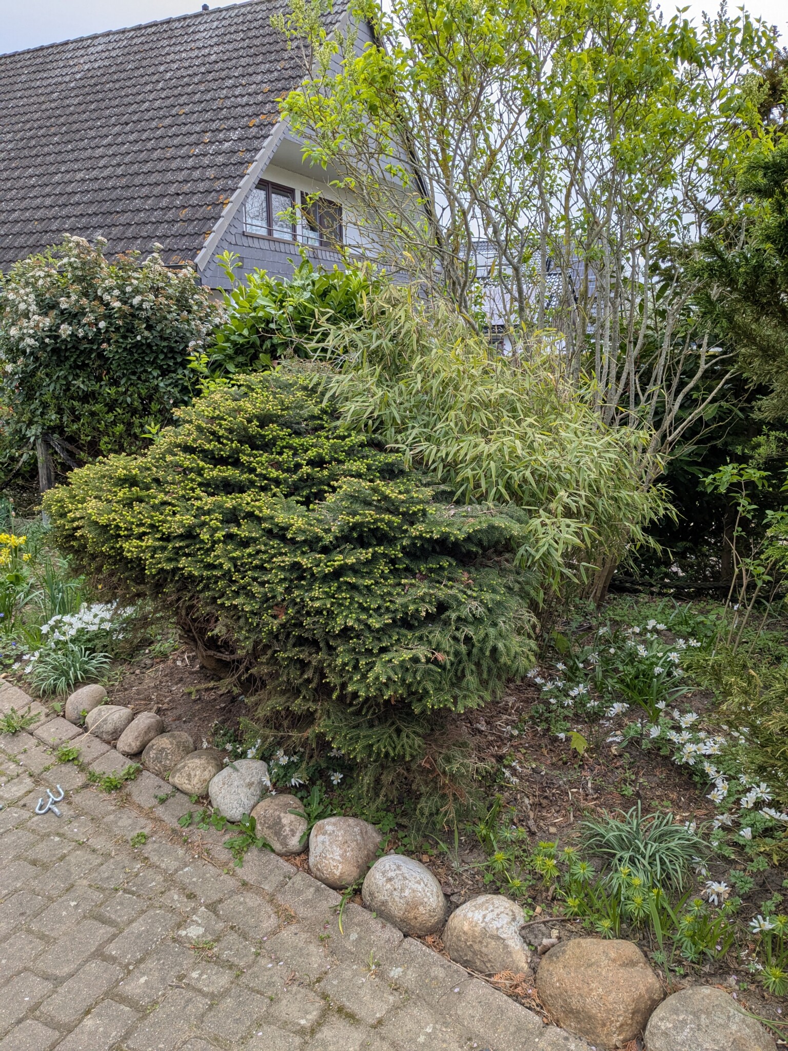 Wir waren erneut fleißig im Garten und haben einen weiteren Teil unserer Fläche umgestaltet (ca. 14m²). Dazu haben wir zunächst Platz geschaffen und Bambus, einen japanischen Spierstrauch sowie ein weiteres kleineres Gehölz entfernt. Auf der neu gewonnenen Fläche setzten wir mehrere ökologische Strukturen um: