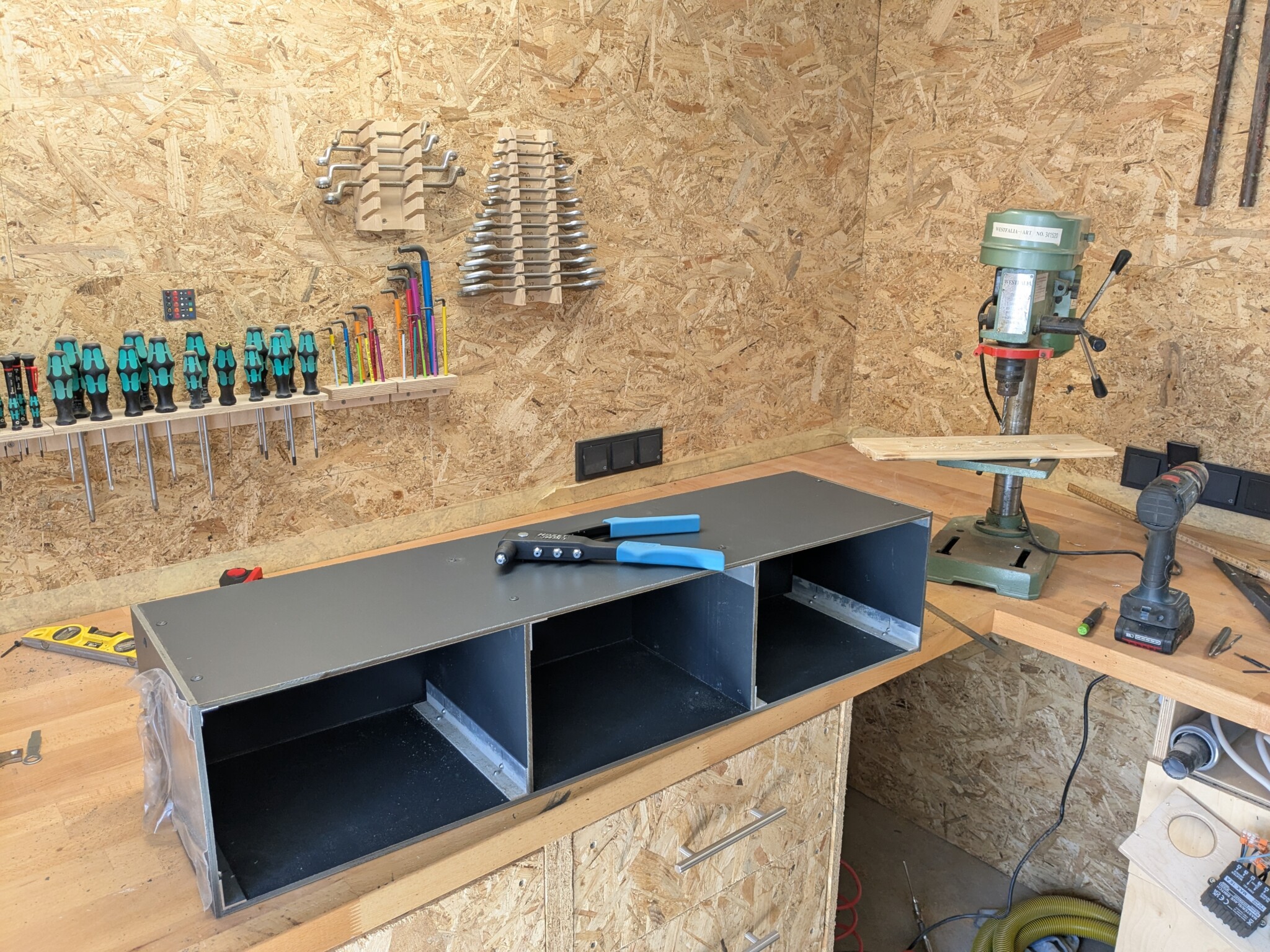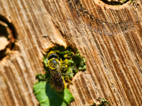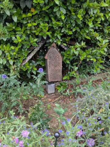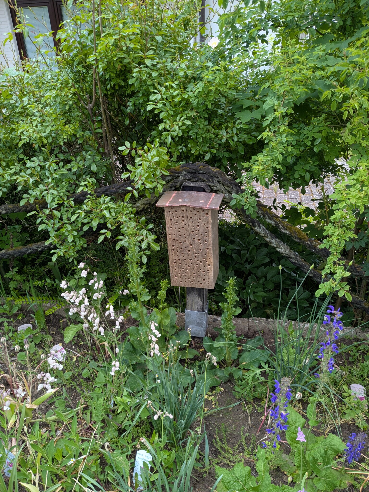 Ein weiteres Bienenhotel hat den Einzug von der Werkbank in unseren Garten genommen.