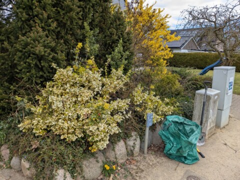 Zudem nahmen wir eine weitere, ca. 10 m² große Fläche entlang des Bürgersteigs in Angriff, die ebenfalls mit Kriechmispel und japanischen Spindelsträuchern bewachsen war. Nach der Entfernung dieser Arten haben wir dort heimisches Saatgut ausgebracht – natürlich mit tatkräftiger Unterstützung unserer Nichten und Neffen.