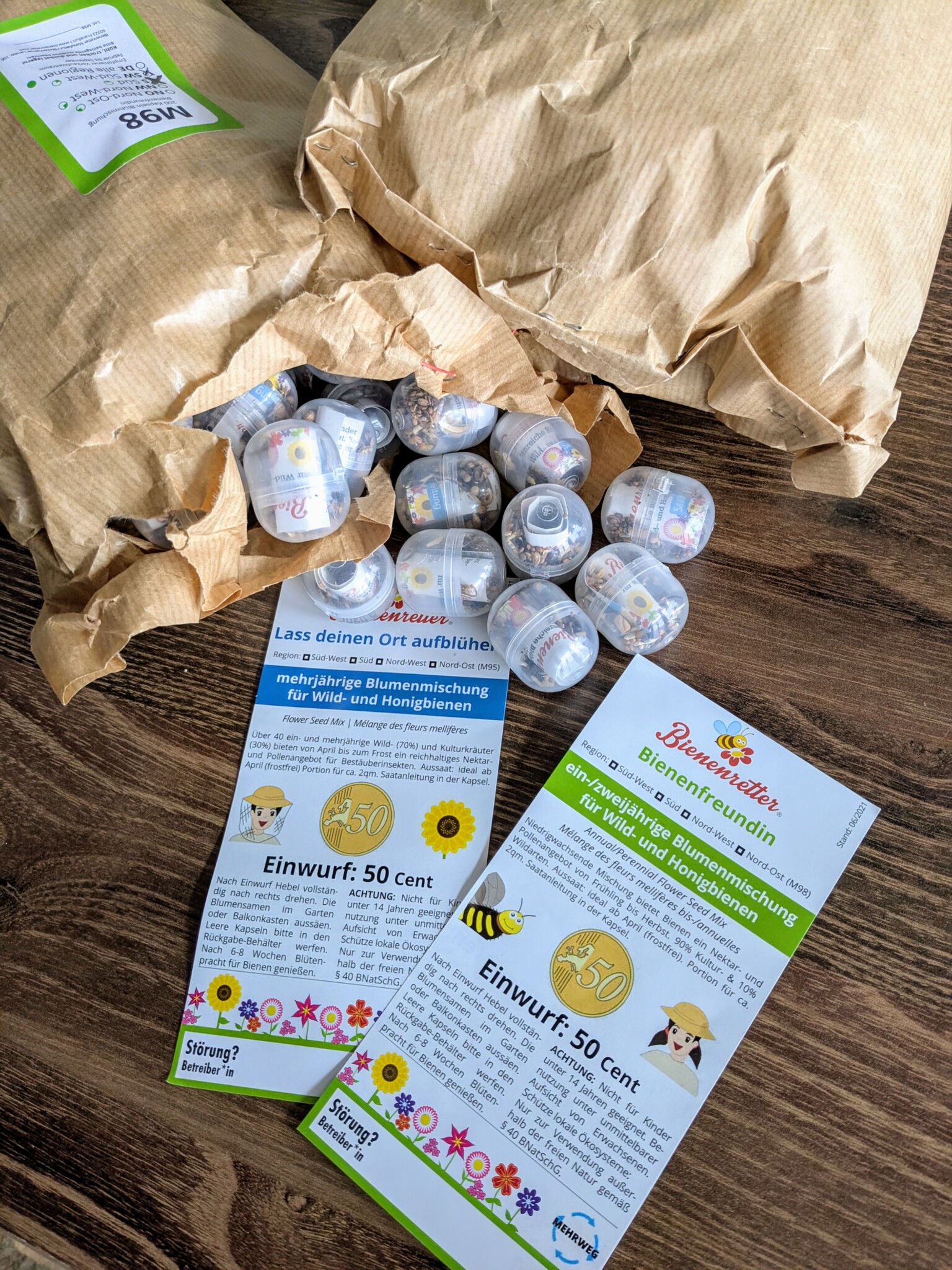 Über den Klimaschutzfonds des Kreises Ostholstein reichten wir eine Projektidee zur Förderung eines „Bienenautomaten“ ein. Der Automat soll an unserem Grundstück entlang des Bürgersteigs installiert werden. Er enthält kleine Saatguttütchen mit gebietsheimischem Wildpflanzensaatgut, die Passant*innen gegen eine geringe Spende ziehen können – eine kreative Möglichkeit, um Menschen für insektenfreundliches Gärtnern zu begeistern und zum Mitmachen zu motivieren.