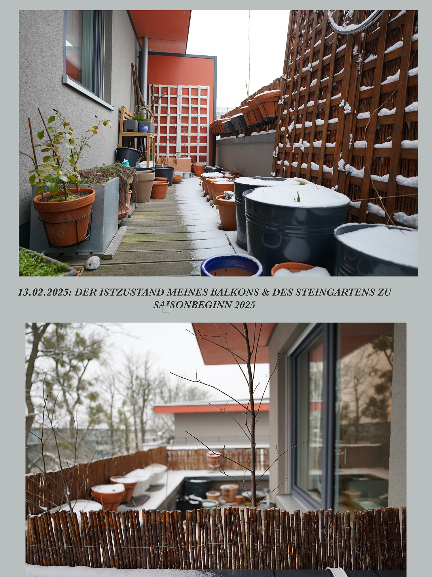 Ich nenne diese Fläche Steingarten, die Steine waren schon da, als ich im Februar 2021 hier einzog. Der Steingarten hat eine Fläche von ca. 4,2qm.