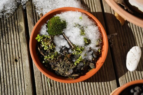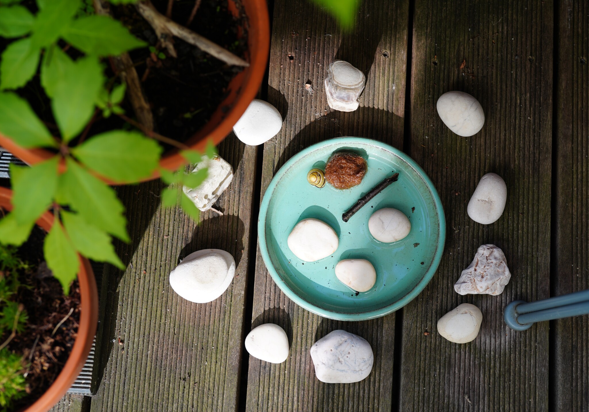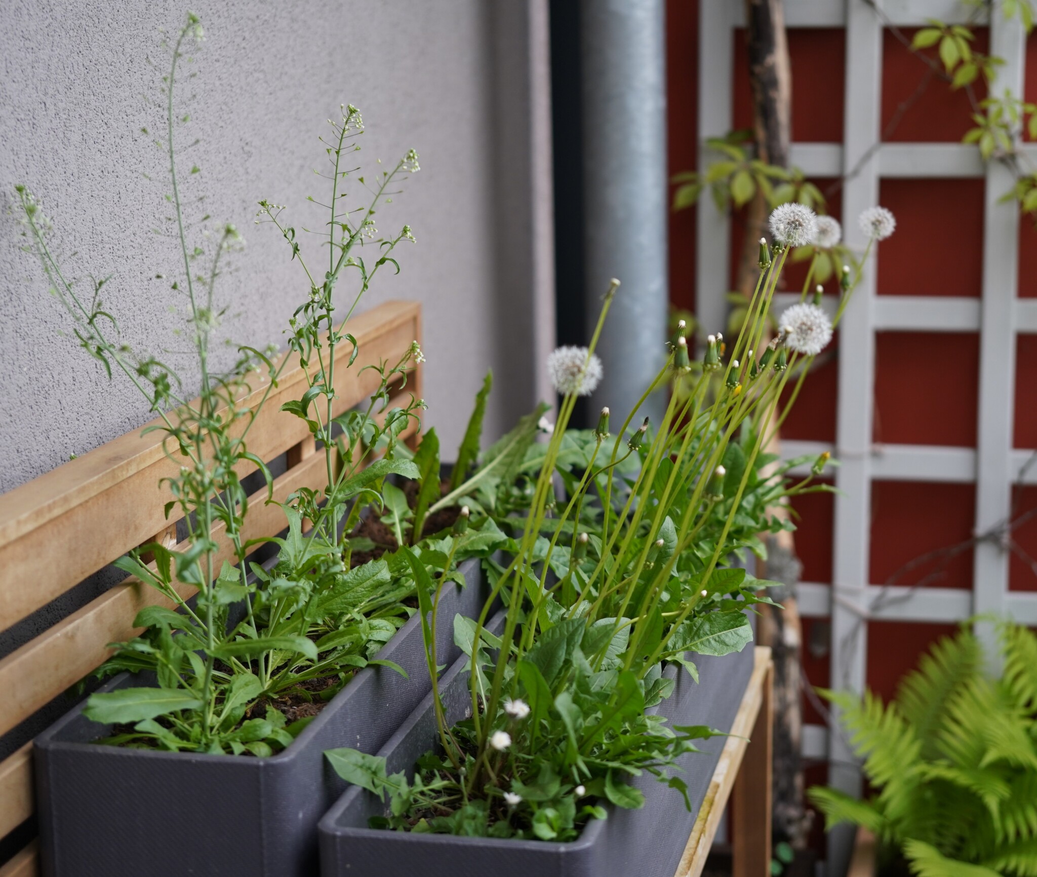 2) Ich fokussiere mich bei der Bepflanzung auf „Basic-Pflanzen“ (z.Bsp. Löwenzahn, Gänseblümchen, Moose, Mauerpeffer).