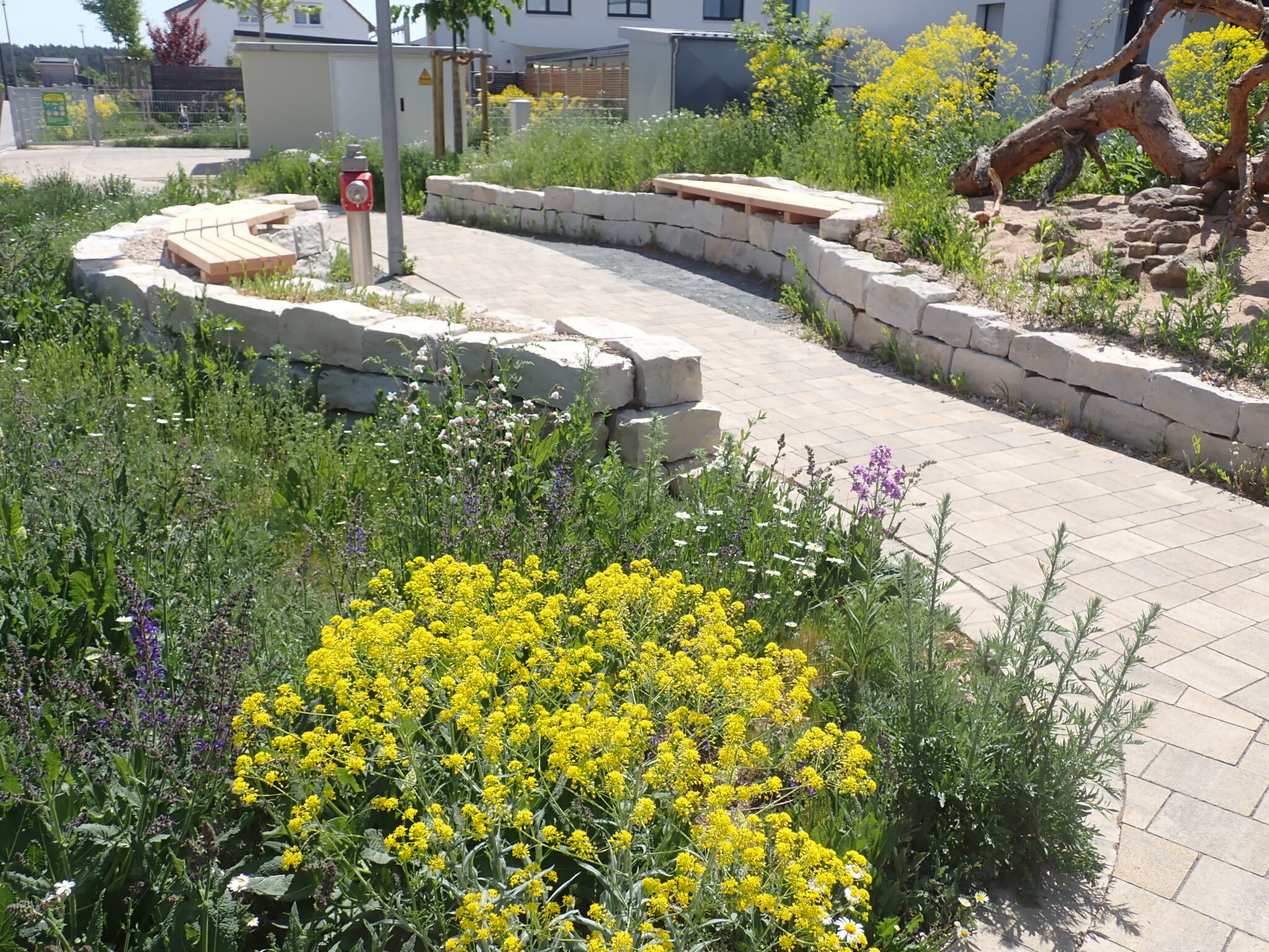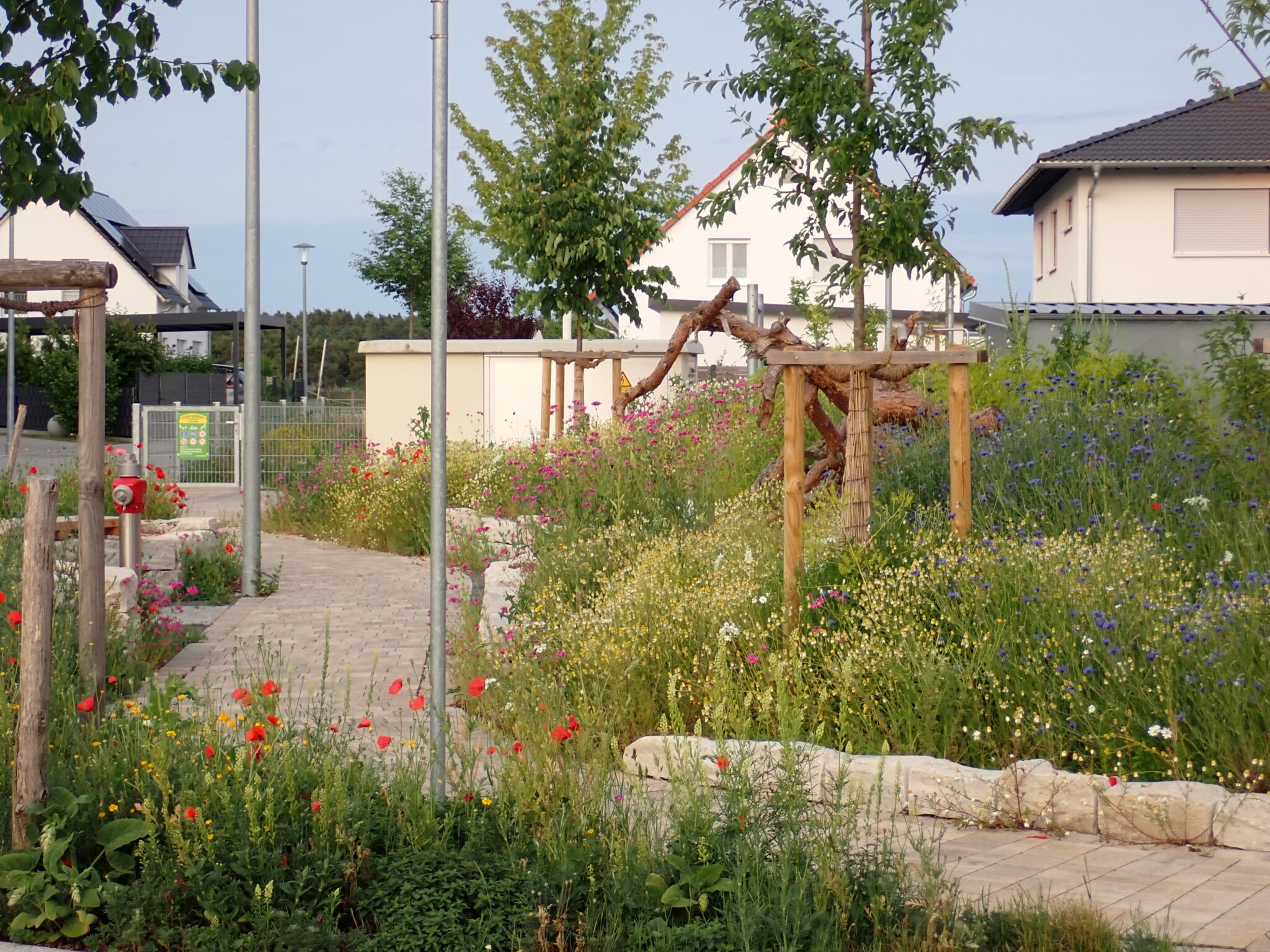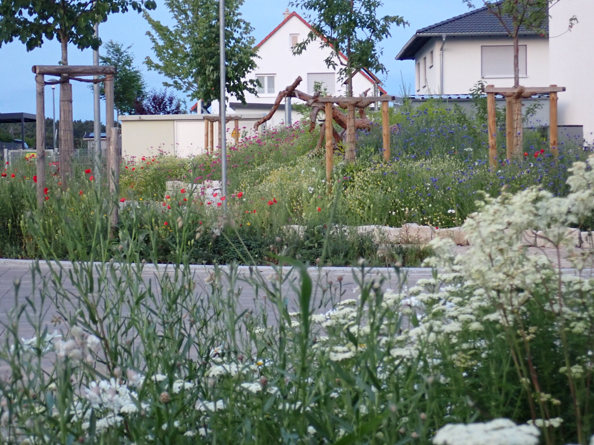 Im Rahmen der Erstanlage des öffentliches Grüns im Neubaugebiet “am Lerchenfeld“ wurde bereits 2023 unter Einbeziehung der Anwohner ein Großteil der öffentlichen Flächen (Spielplatz, Baumscheiben, Säume…) naturnah gestaltet.