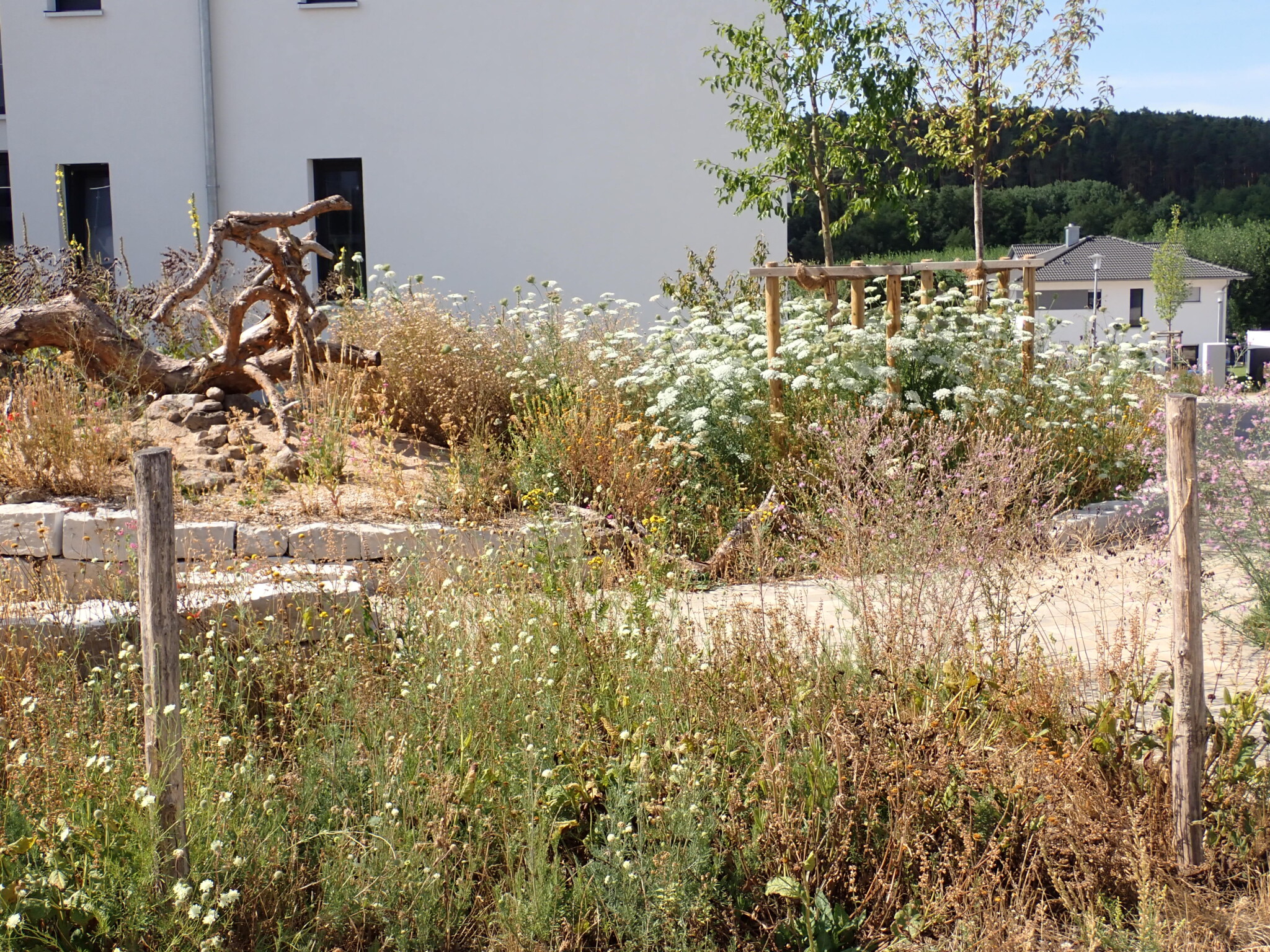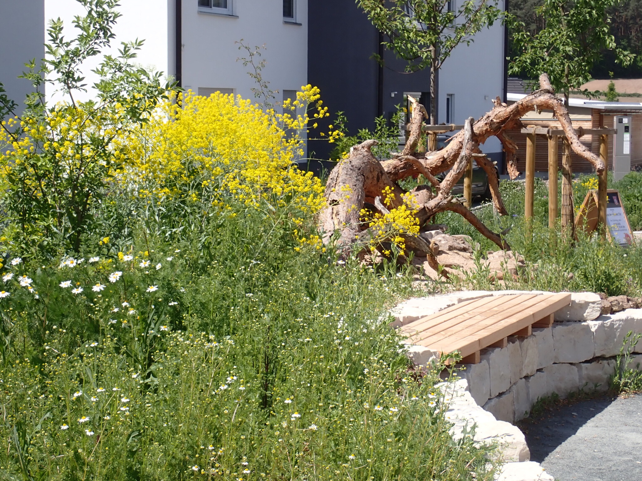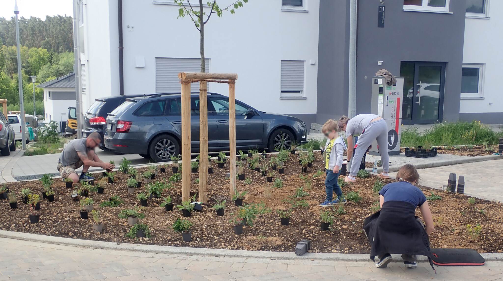 Im Rahmen der Erstanlage des öffentliches Grüns im Neubaugebiet “am Lerchenfeld“ wurde bereits 2023 unter Einbeziehung der Anwohner ein Großteil der öffentlichen Flächen (Spielplatz, Baumscheiben, Säume…) naturnah gestaltet.