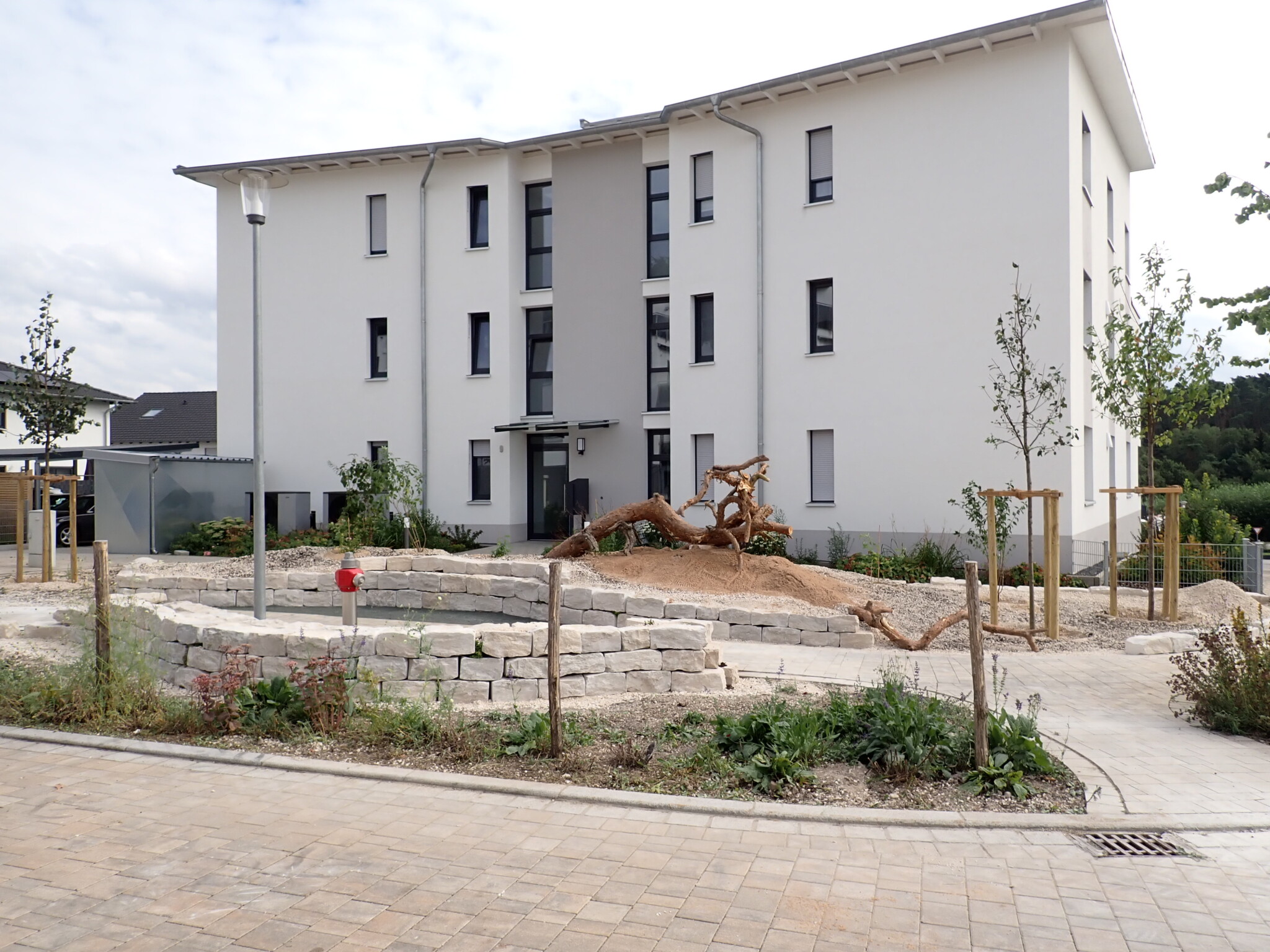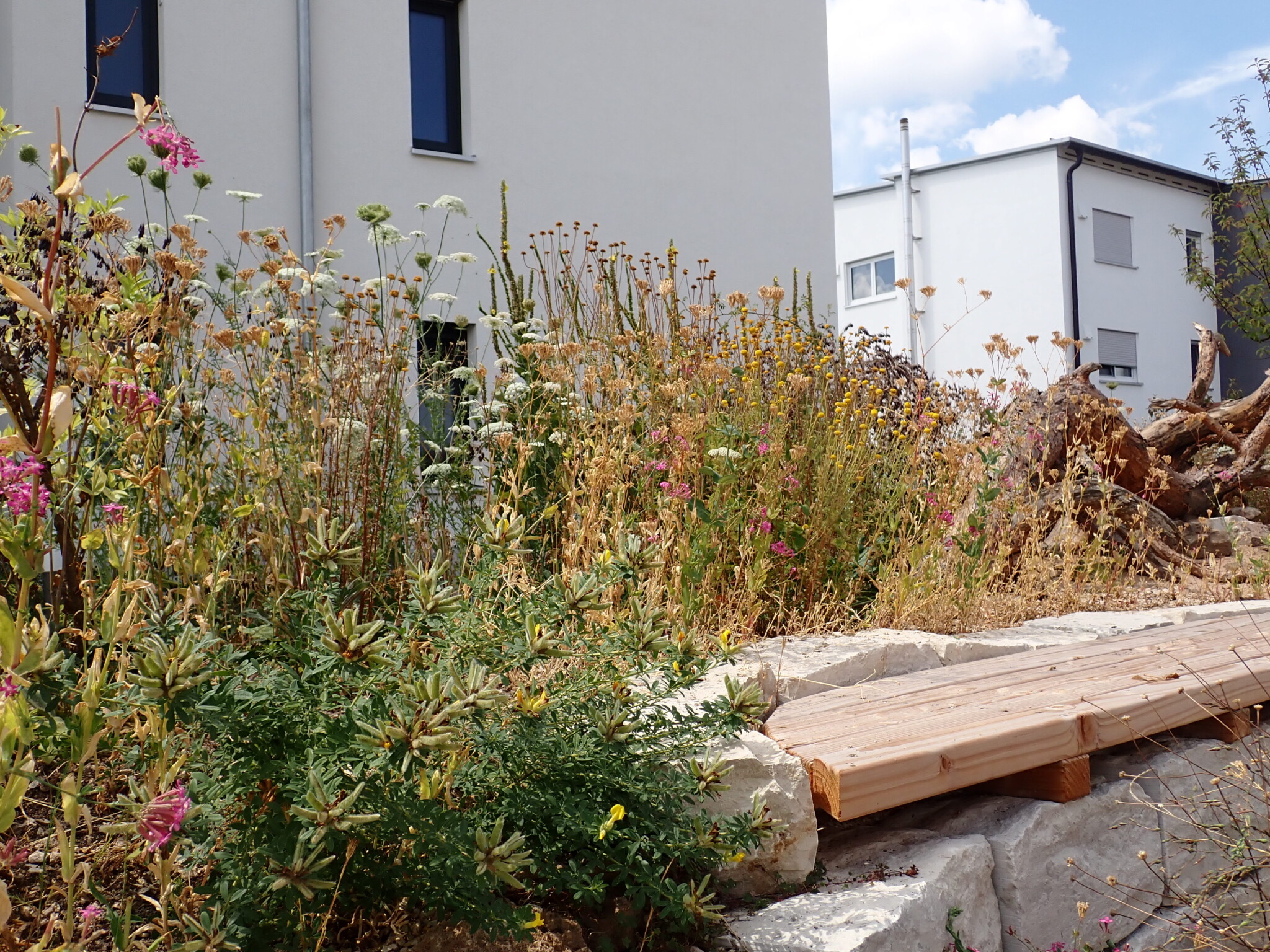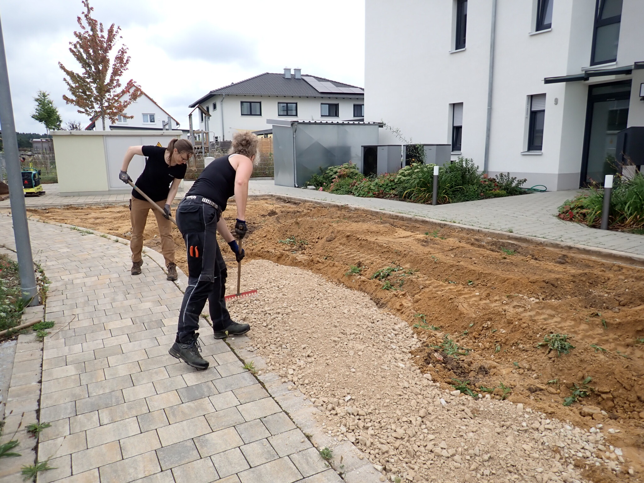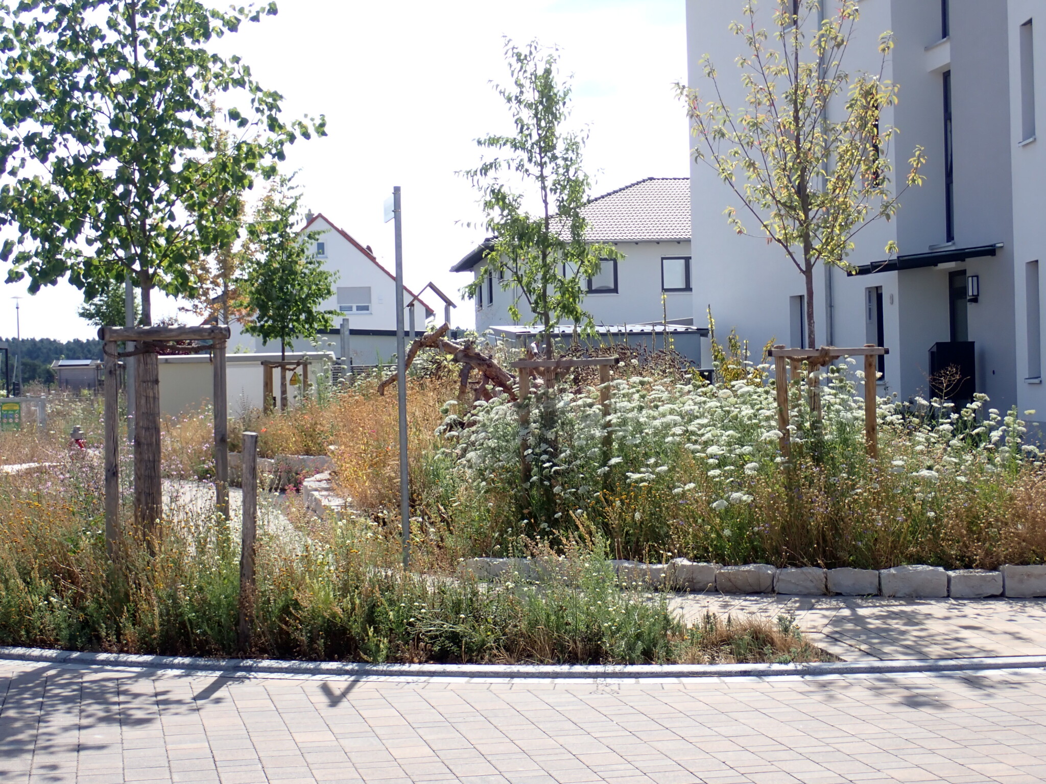 Im Herbst 2024 folgte dann als letzter Bauabschnitt -und quasi als “Visitenkarte“- eine prominent an der Einfahrt des Quartiers gelegene Fläche vor einem Mehrfamilienhaus.