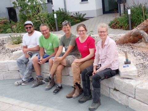 Die Baustelle diente als Lehrbaustelle für angehende Naturgarten-Profis, bezog aber auch örtliche Helfer mit ein.