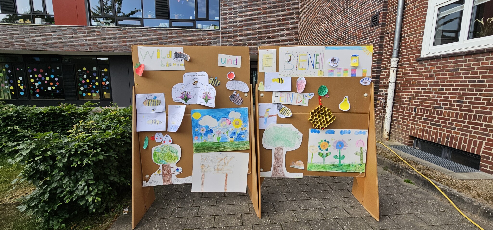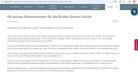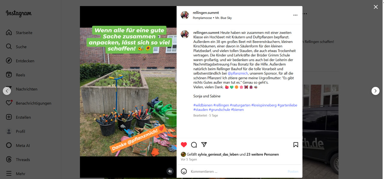 Unterstützt hat uns dabei unser Sponsor “Pflanzmich“ mit einer großen Pflanzenspende und die Gärtner der Gemeinde Rellingen, die vor der Aktion Rasen in eine Beetfläche umgegraben haben. Die Schulklasse hat zum Thema “Biene“ vorher fleißig gemalt und wurde von engagierten Lehrer*innen und Betreuungskräften informiert.