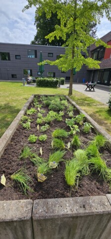 Diese Aktion hat in der Brüder-Grimmschule mit einer 2. Klasse stattgefunden. Dabei haben wir 38m² Beet bienenfreundlich bepflanzt und zusätzlich ein Hochbeet mit unterschiedlichsten Kräutern angelegt.