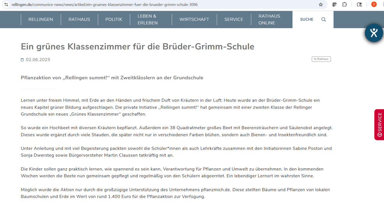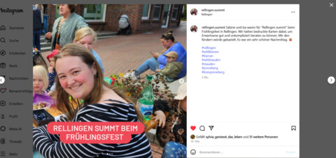 “Rellingen summt“ gibt es seit 2023. Wir, Sonja Dwersteg und Sabine Poston, haben diese Initiative gestartet und jedes Jahr gestalten wir 2-3 Pflanzaktionen in der Gemeinde im Jahr, damit Rellingen noch insektenfreundlicher wird. Außerdem informieren wir auf Märkten und auf einem eigenen Instagram-Account sowie über die Gemeinde-Webseite zu unseren Aktionen.